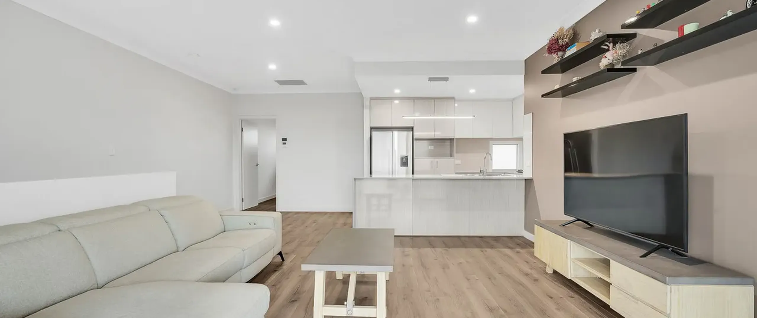INCLUSIONS: 4 wall mounted shelves in lounge (not large weight bearing)