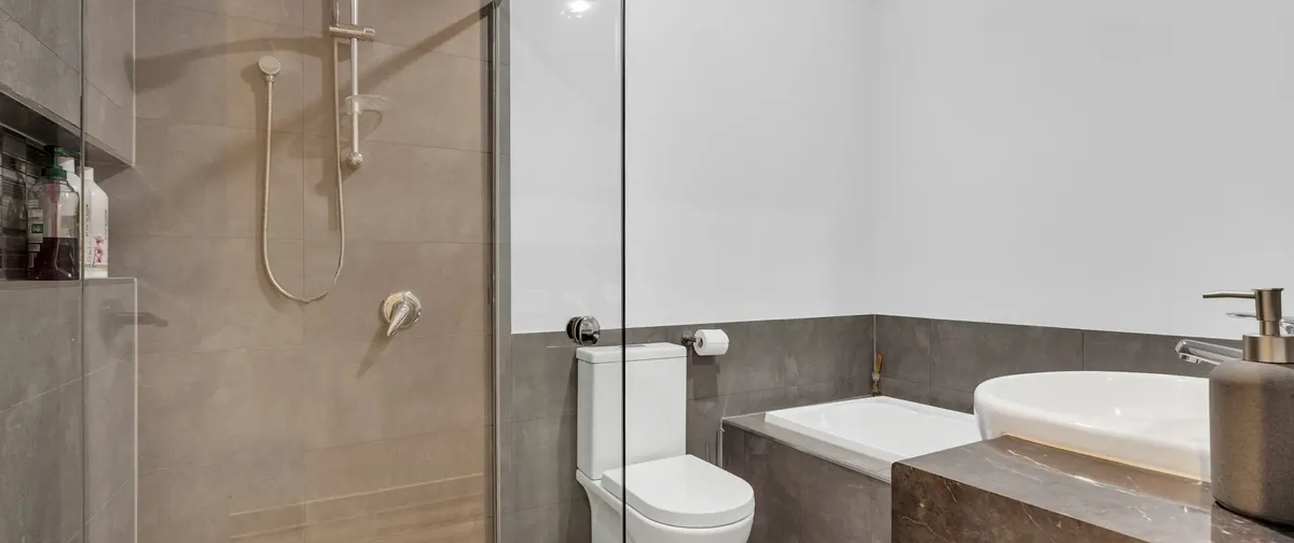 - Contemporary main bathroom on the ground level with separate bath and shower