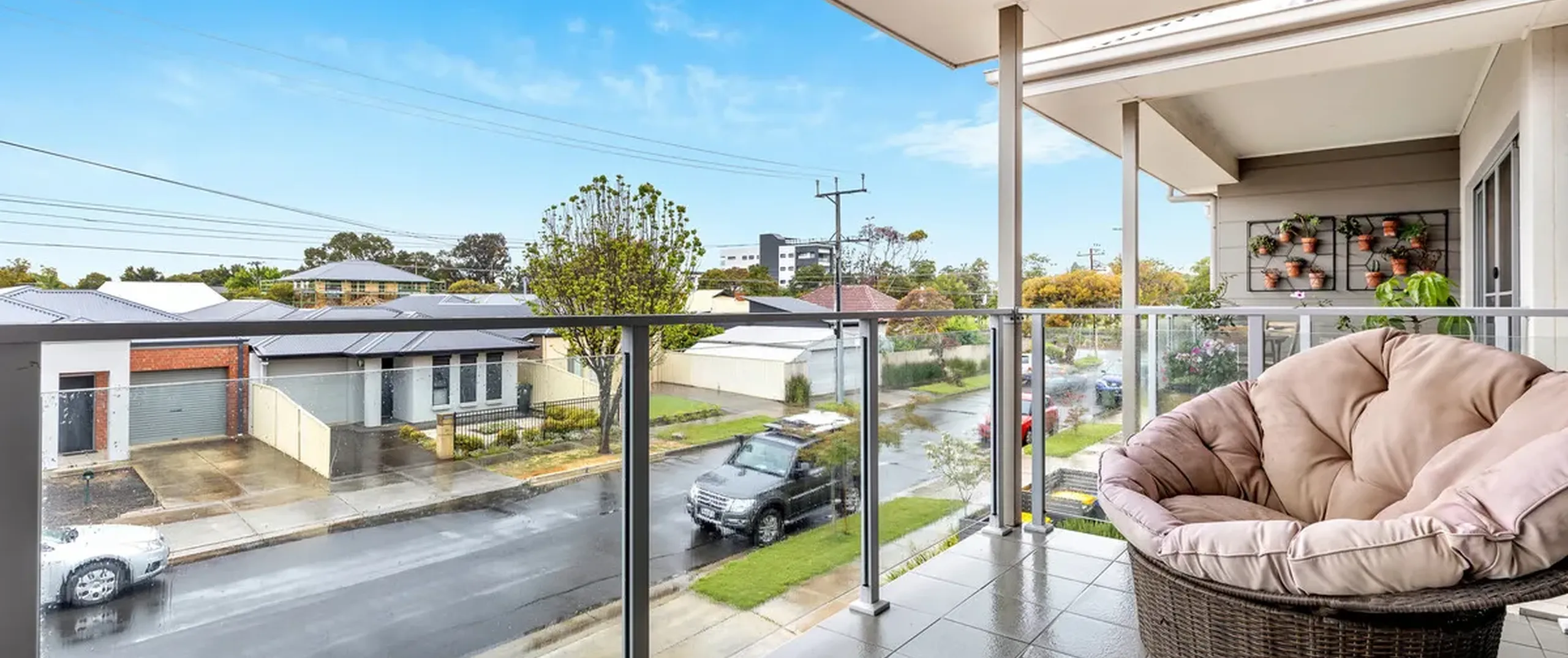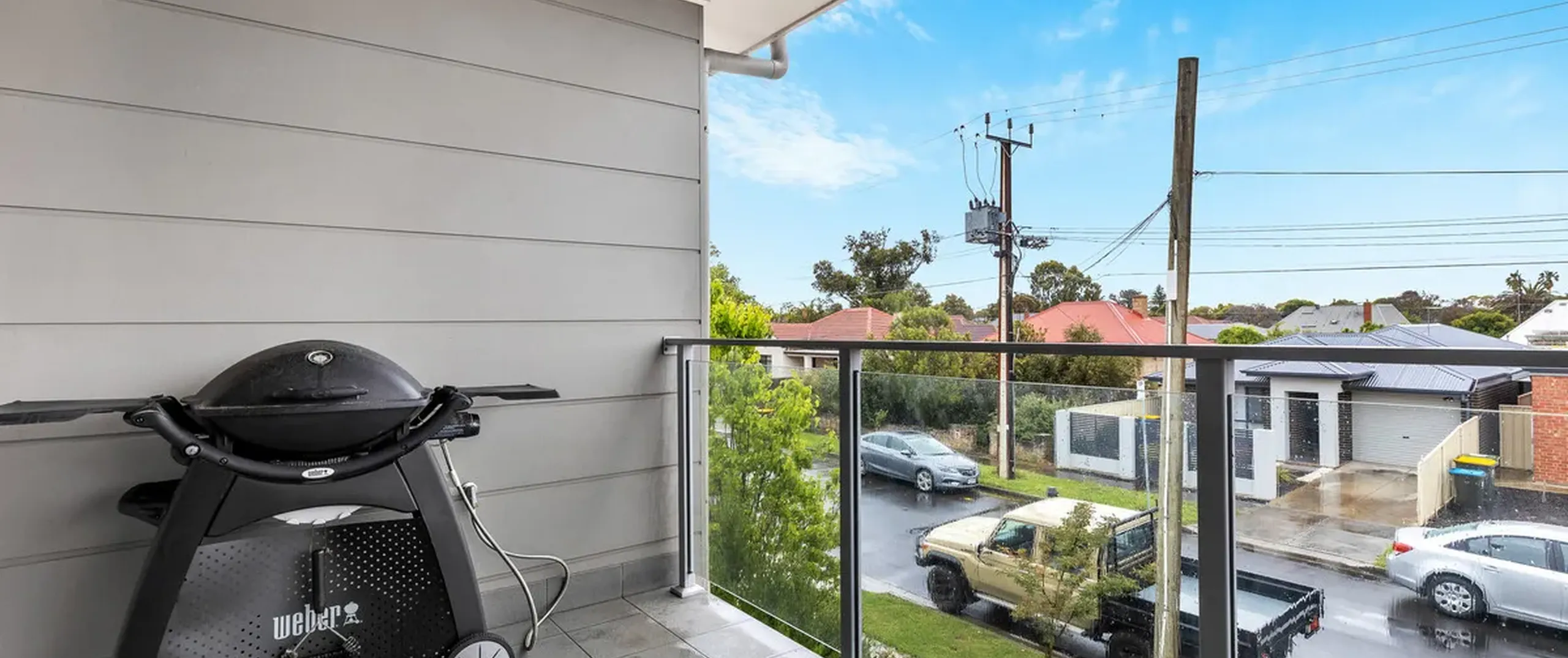 - Open plan lounge and kitchen upstairs with glass sliding doors opening to the balcony