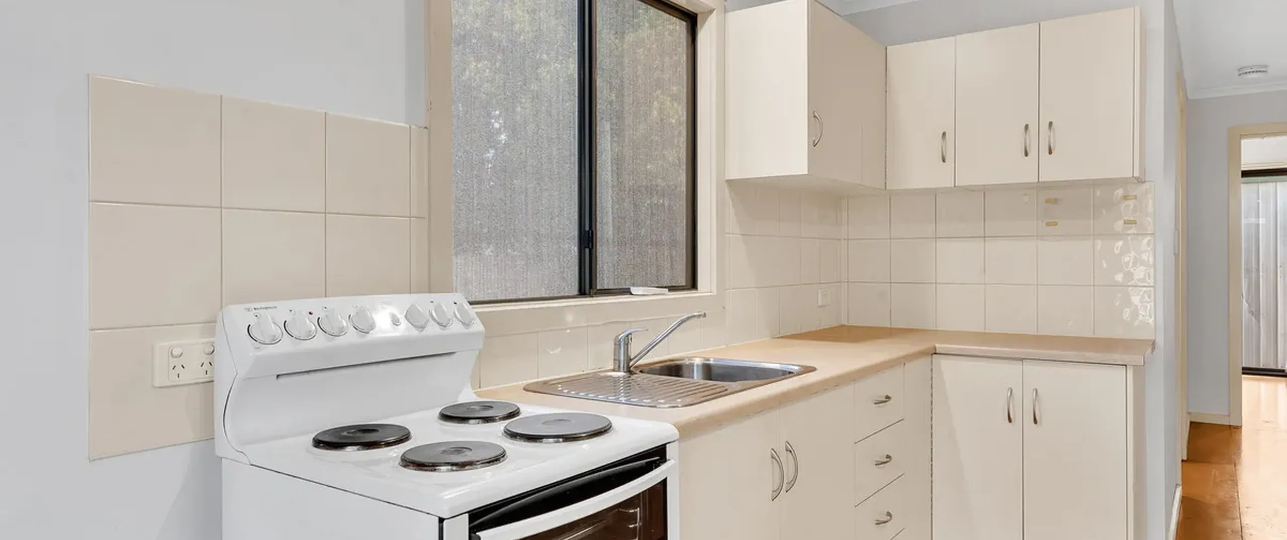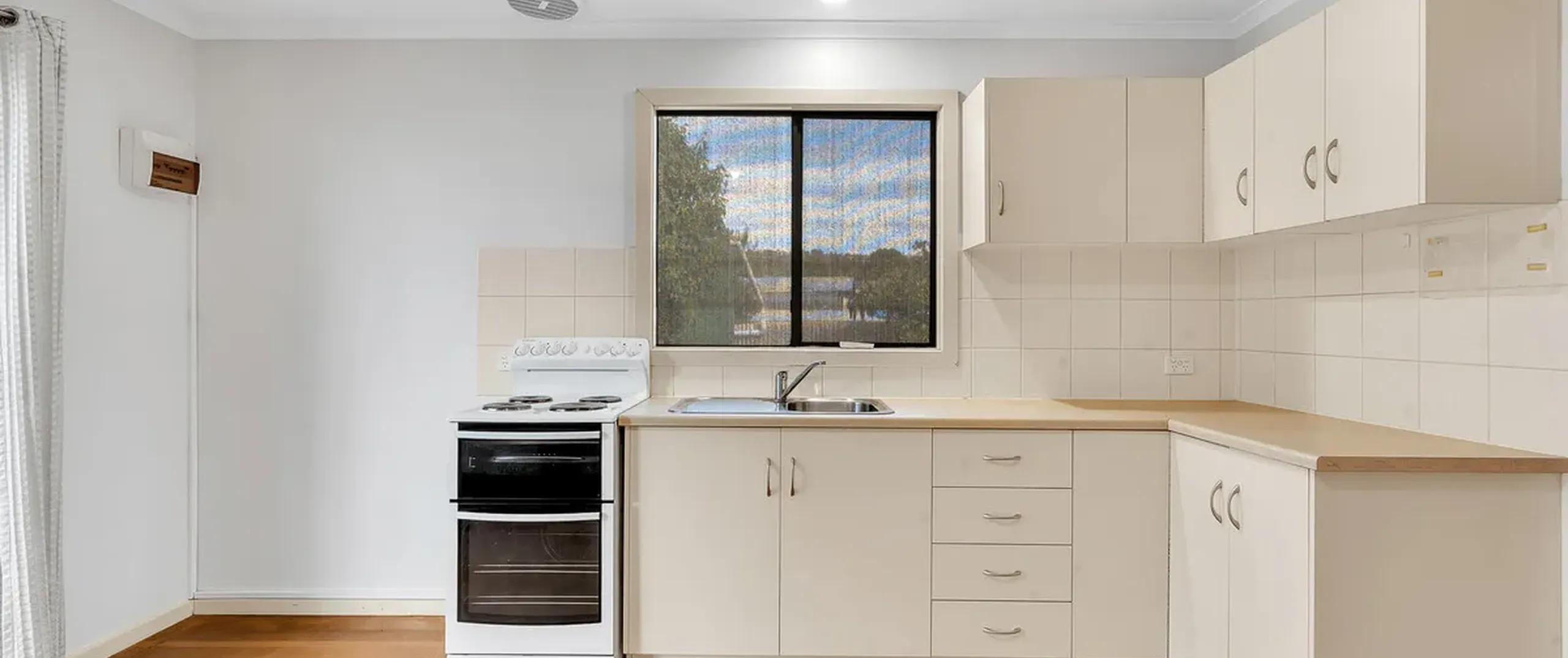 - Updated kitchen with electric cooking and ample cupboard storage