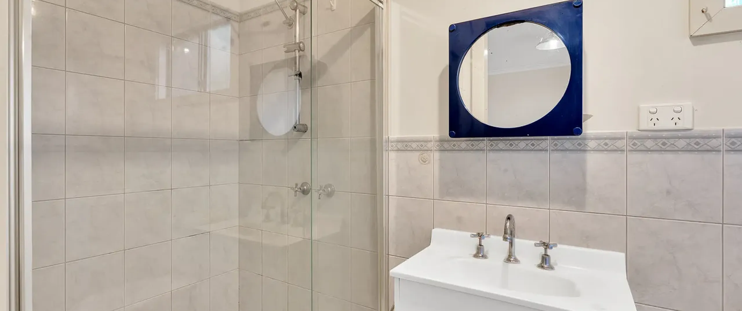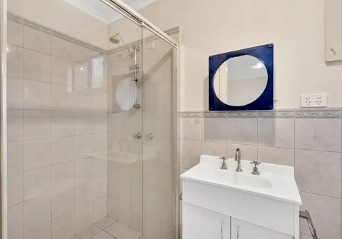 - Modern bathroom with shower and laundry facilities