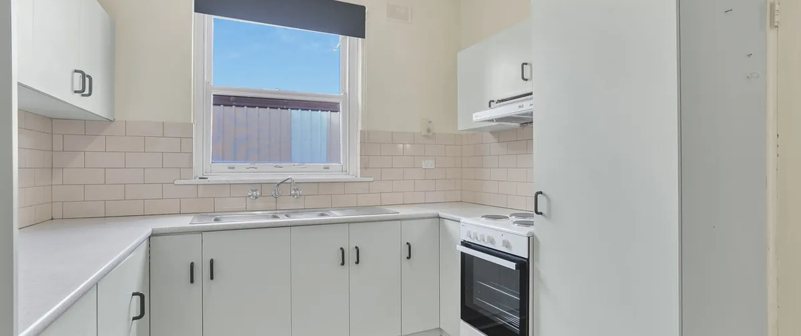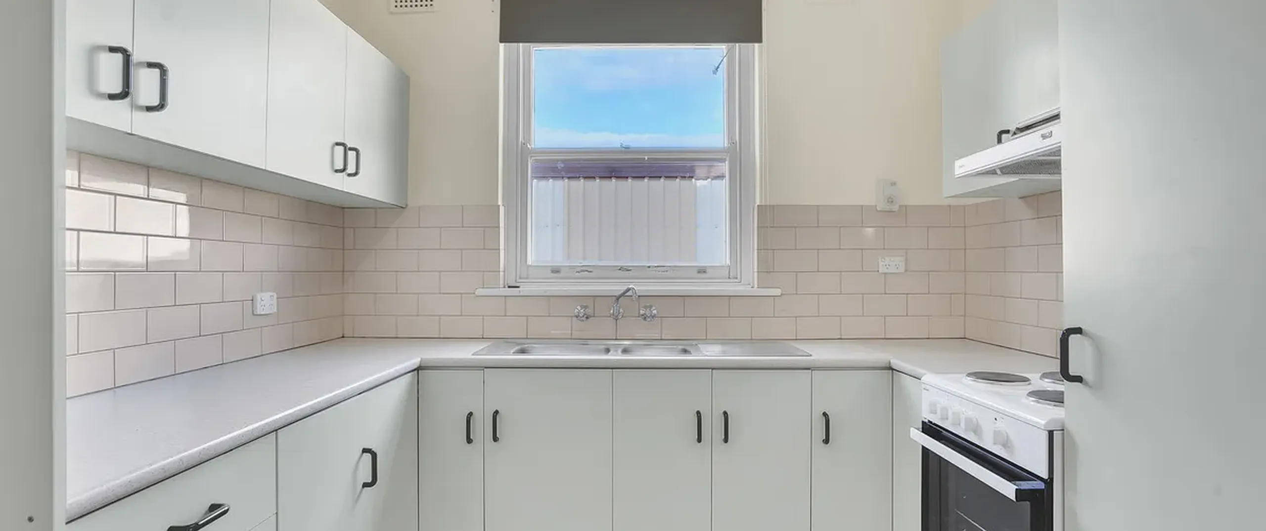 - Bright updated kitchen with stainless steel sink, electric cooking and plenty of storage