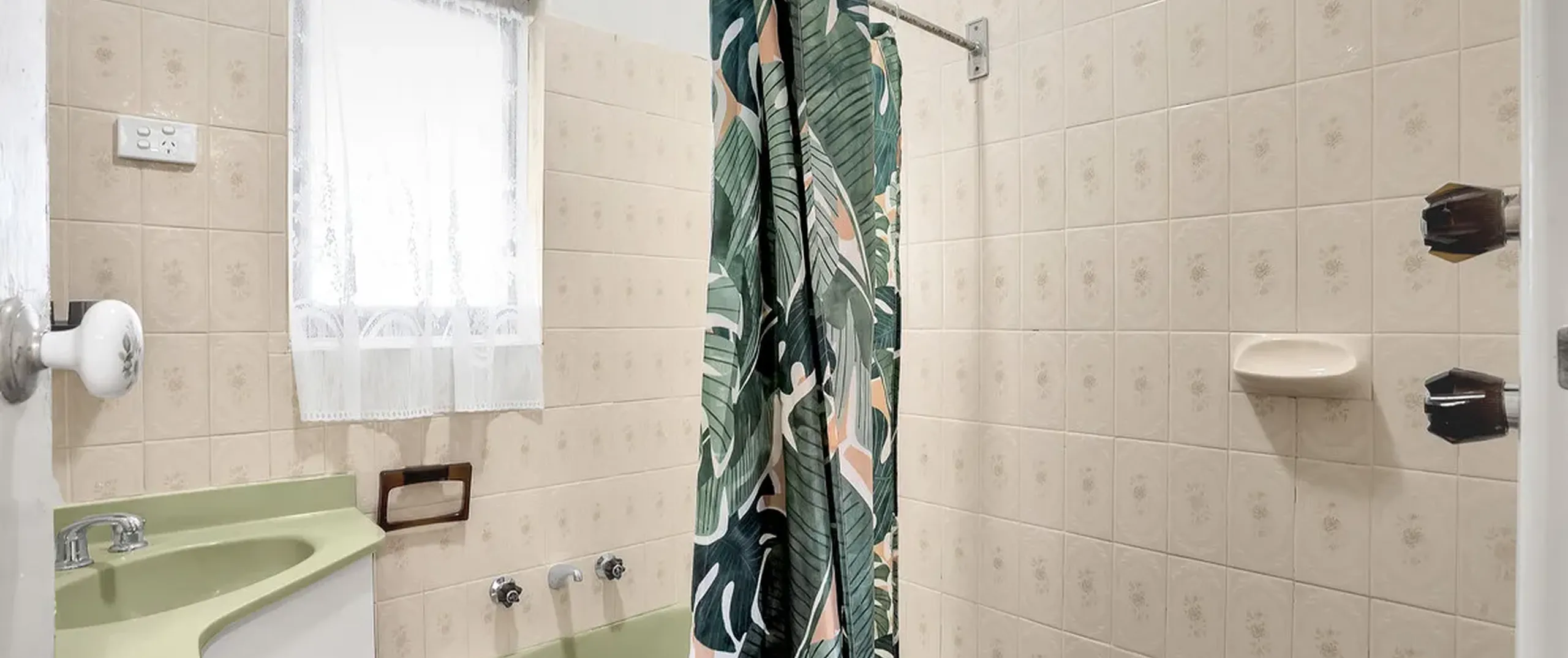 - Tiled bathroom with shower and bath