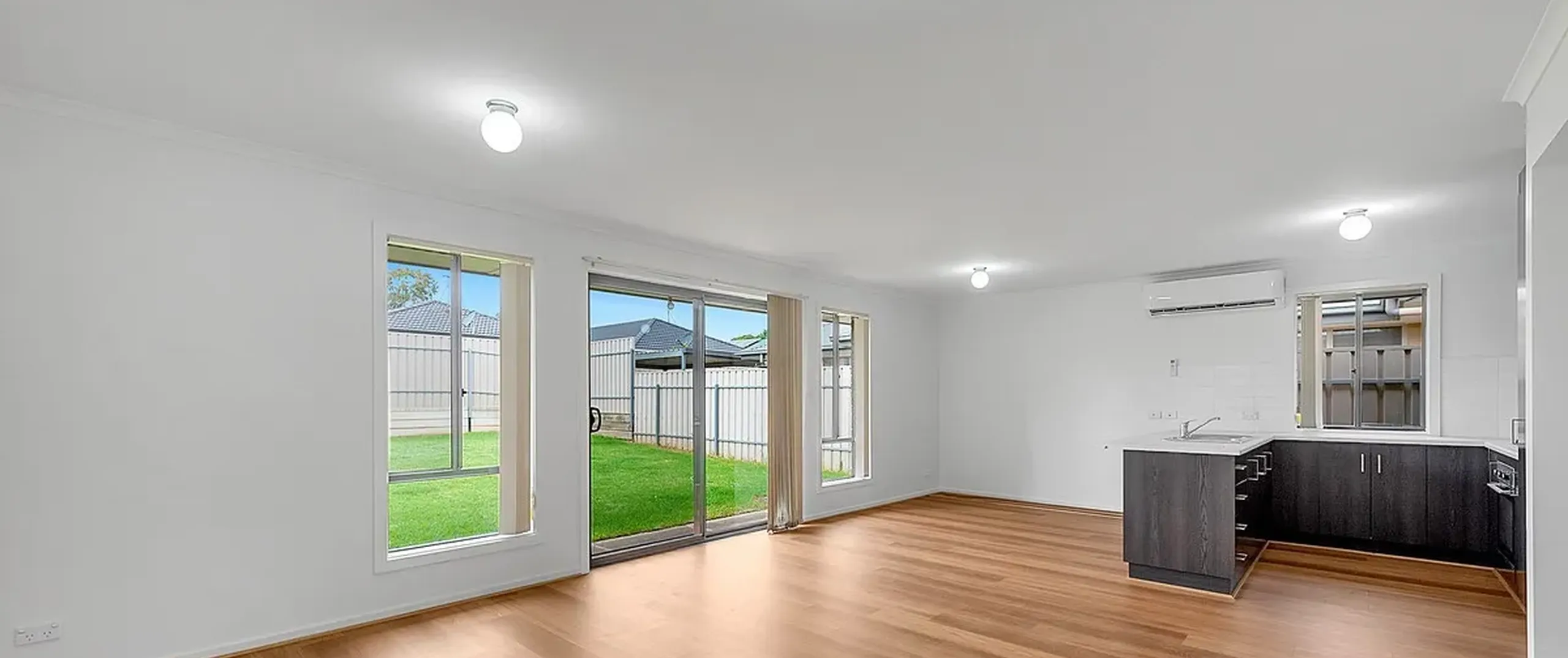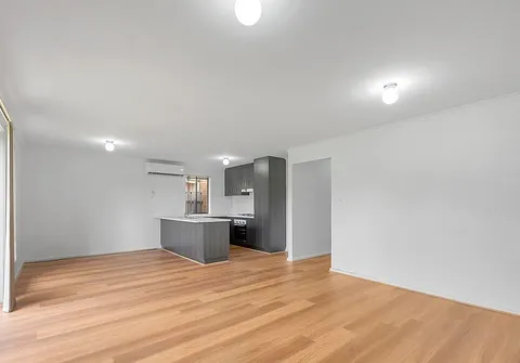 - Bright and spacious open plan living and dining room with reverse cycle split system air conditioning, and external sliding doors to backyard