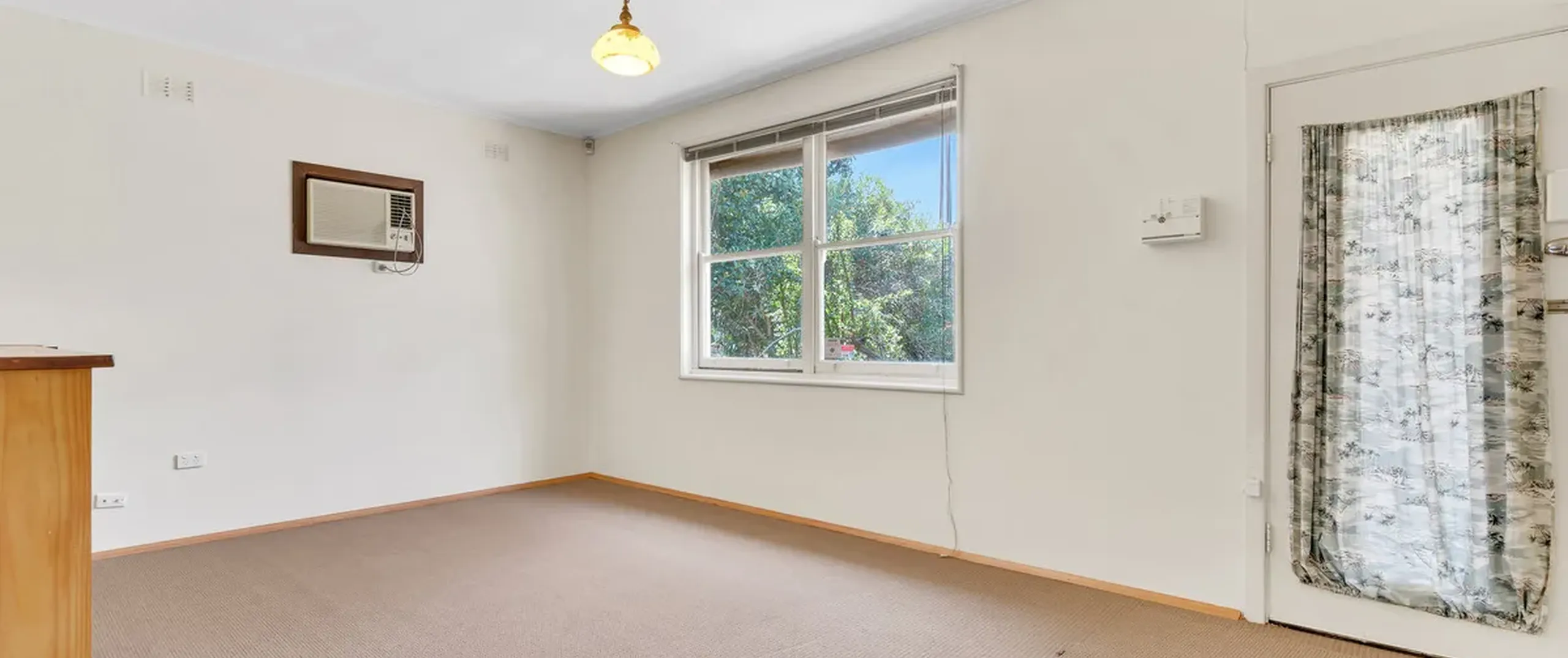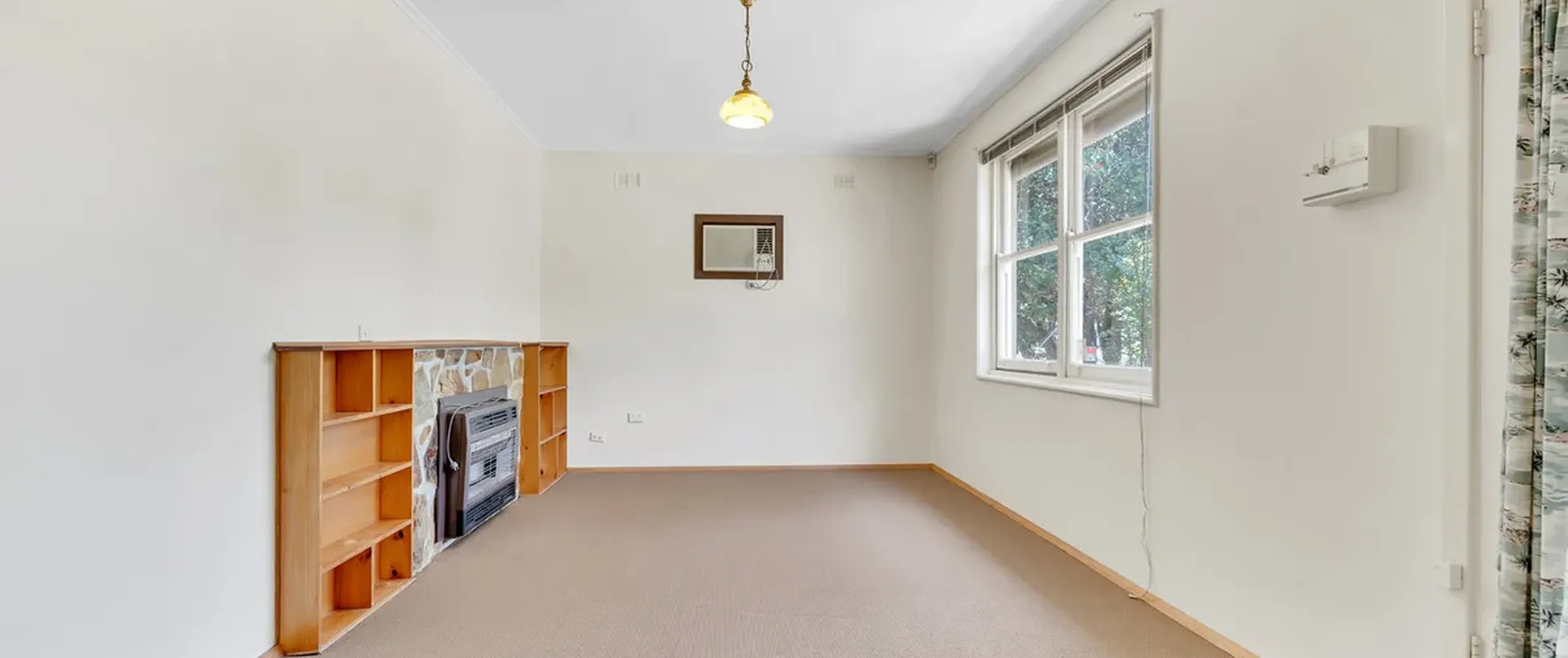 - Spacious separate living with built in shelving