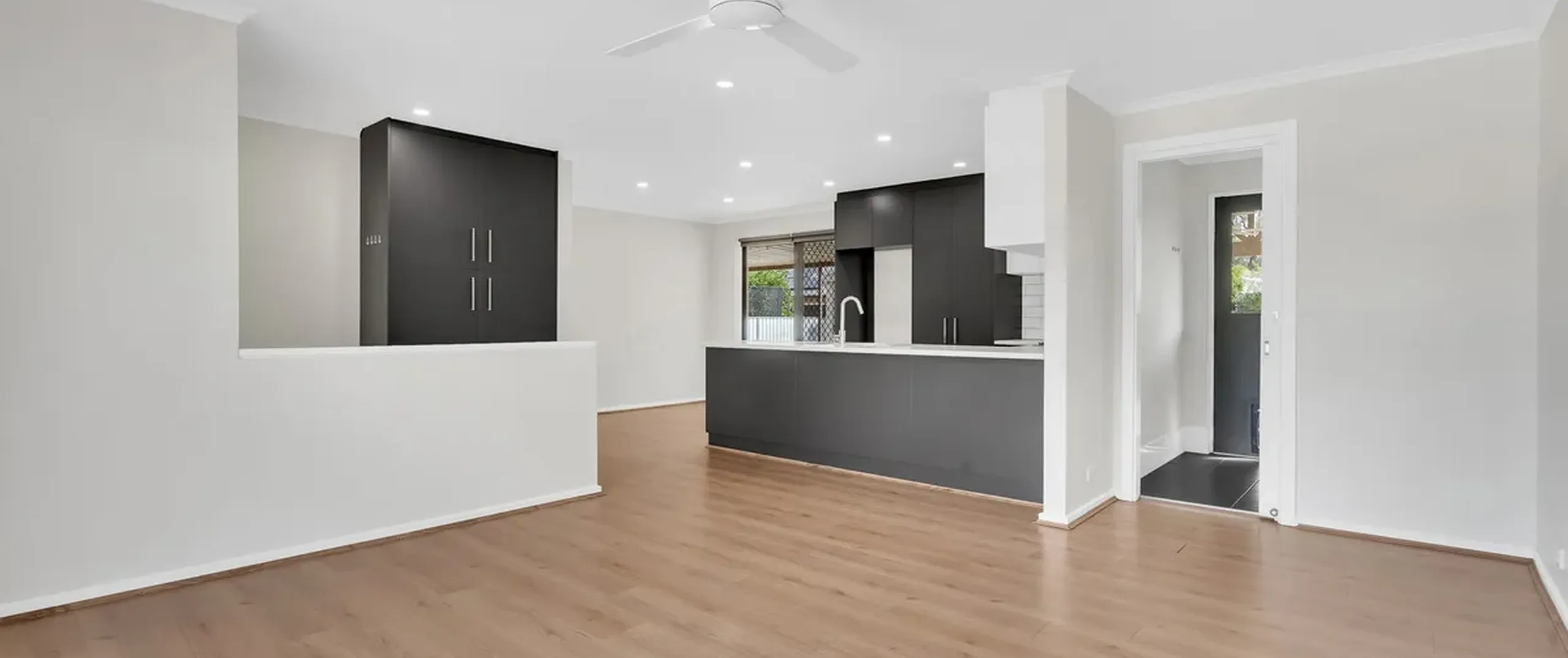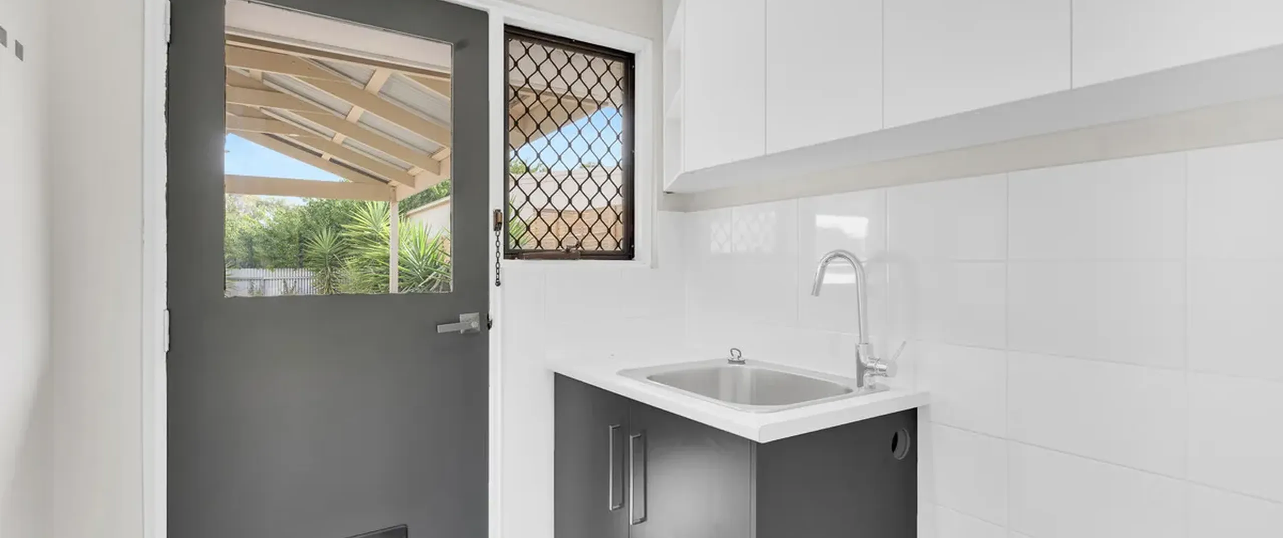 - Laundry with external access and cupboard storage