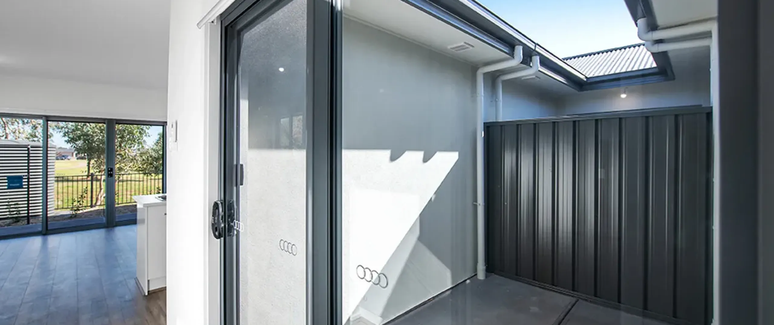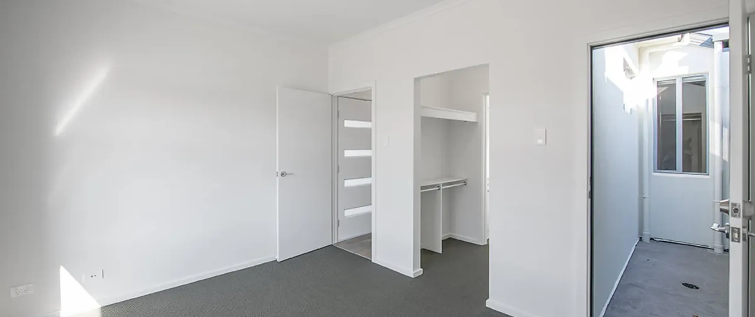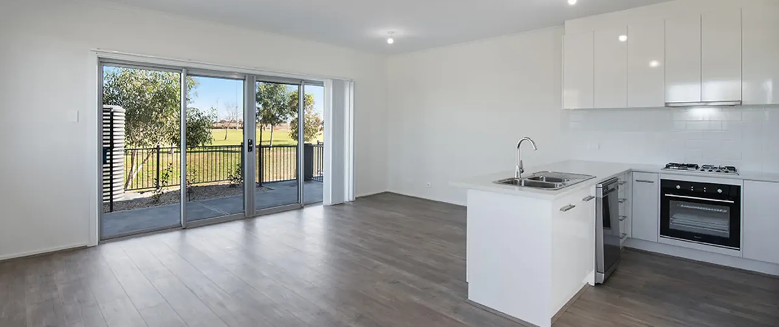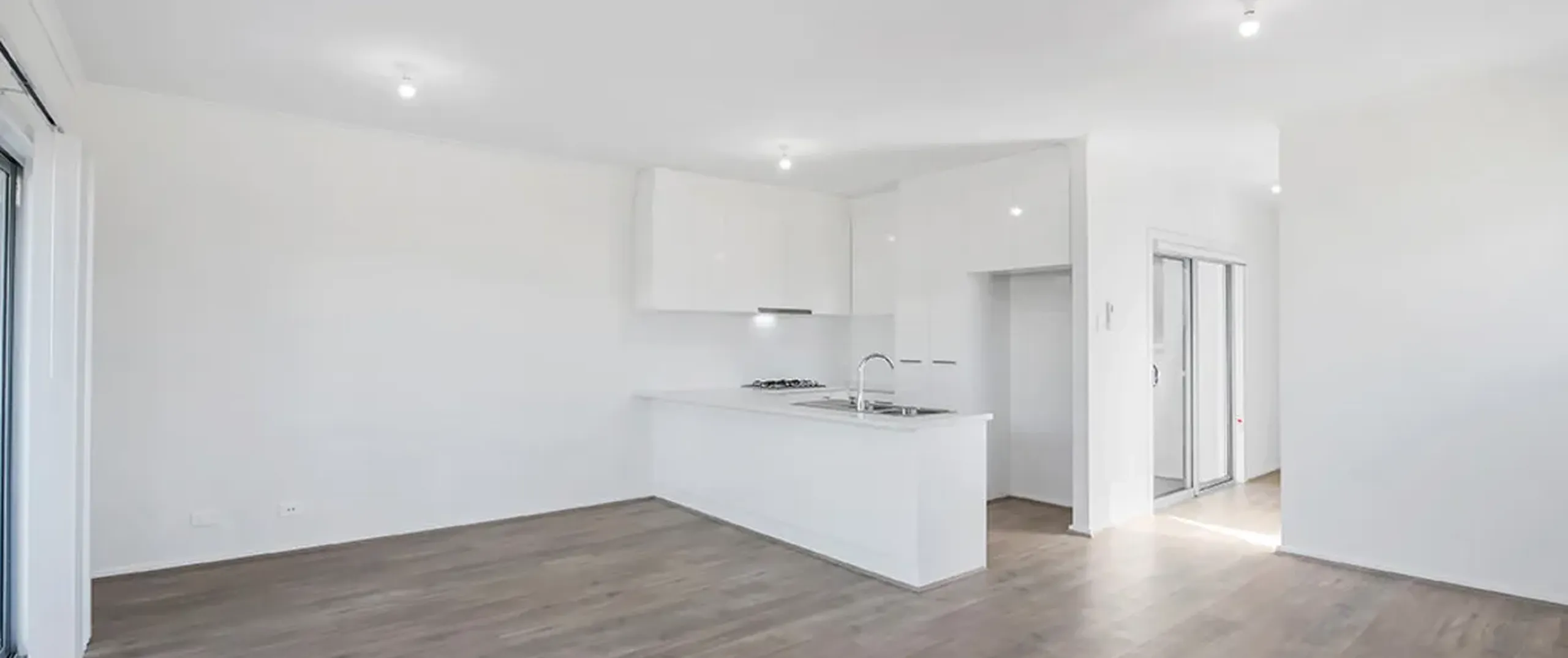 - Light-filled living area with glass sliding door opening to rear yard