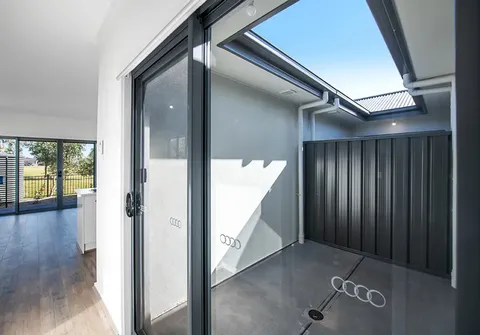 - Single garage with automatic roller door