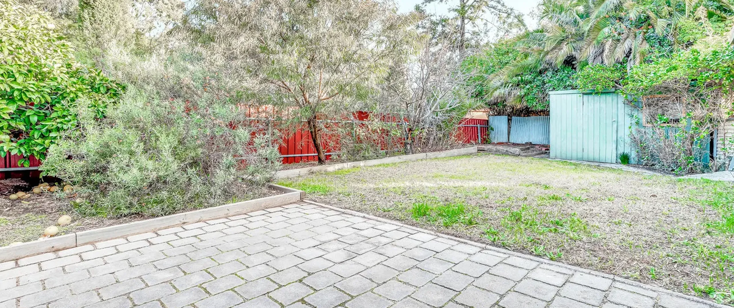- Low-maintenance backyard with good-sized lawns and garden shed