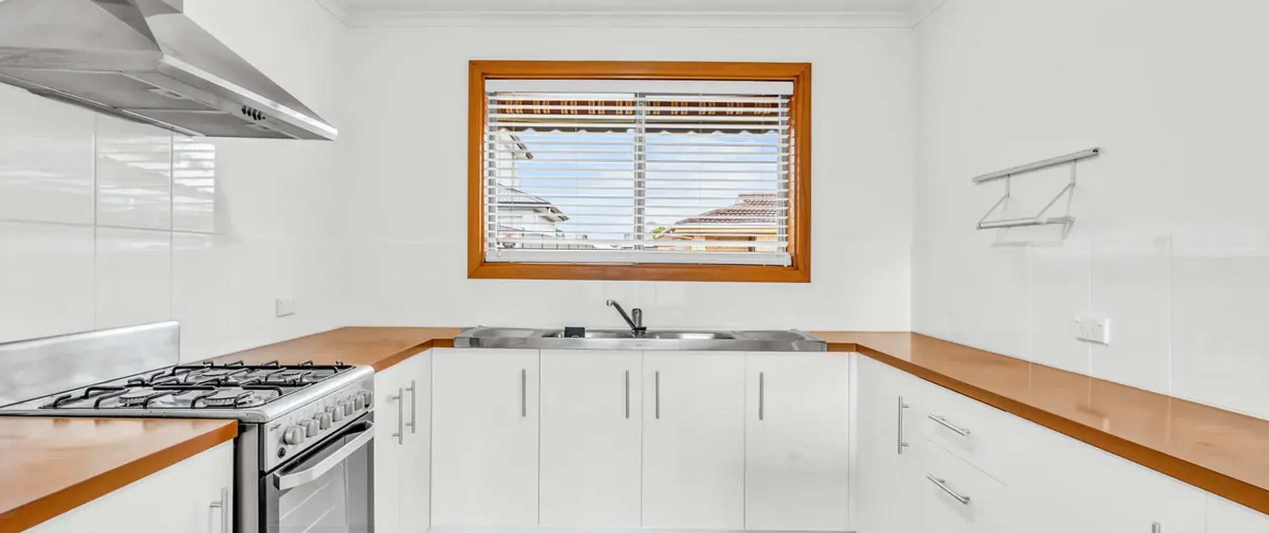 - Well-appointed kitchen with gas cooktop, oven and ample cupboard and bench space
