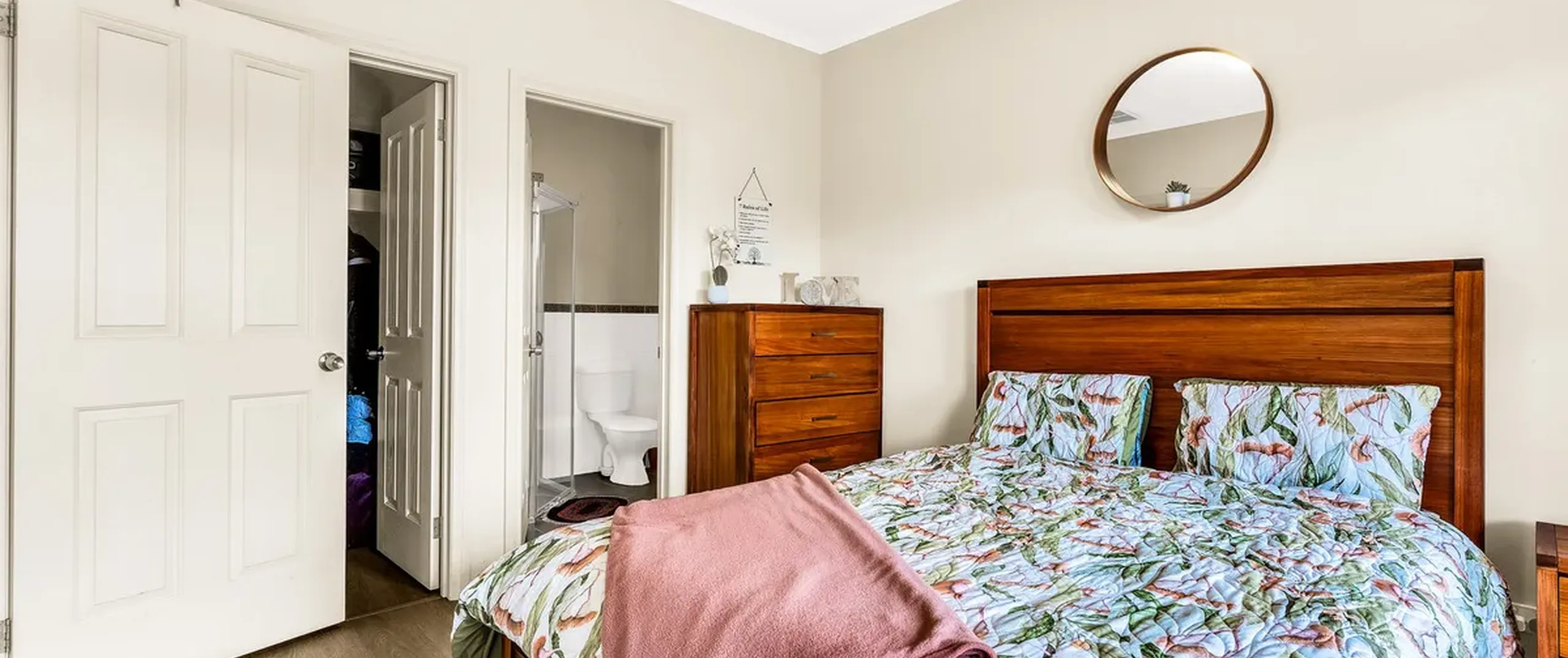 - Ensuite equipped with corner shower, toilet and vanity with storage