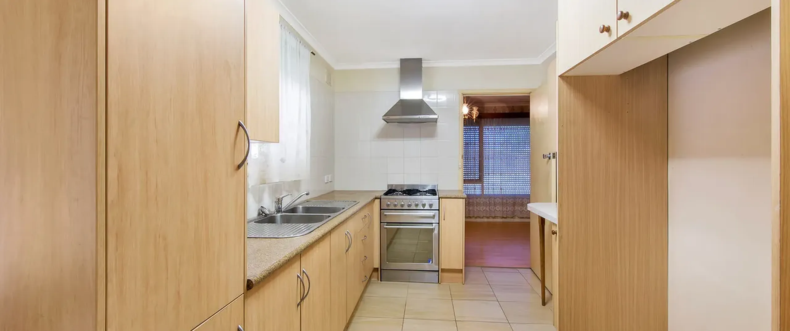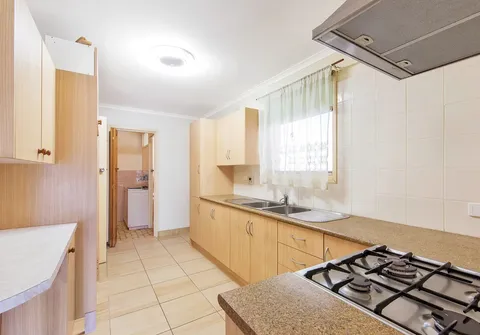 - Modern kitchen with a 4 burner gas cook top, oven, ample storage and bench space