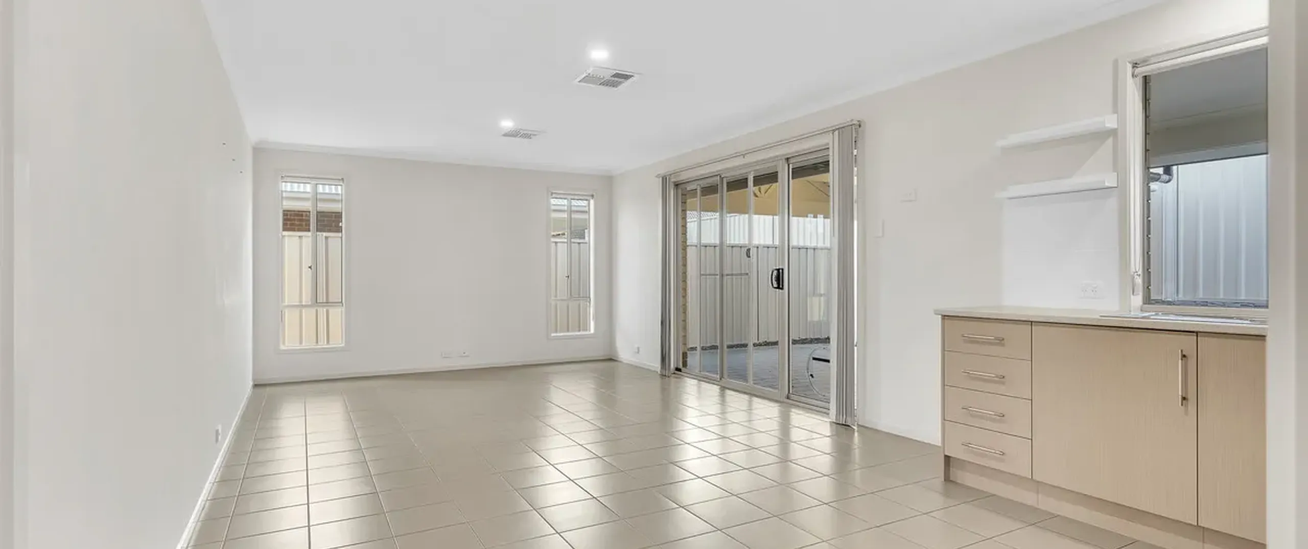 - Fantastic, open-plan kitchen, living and dining area with glass sliding door opening to the verandah