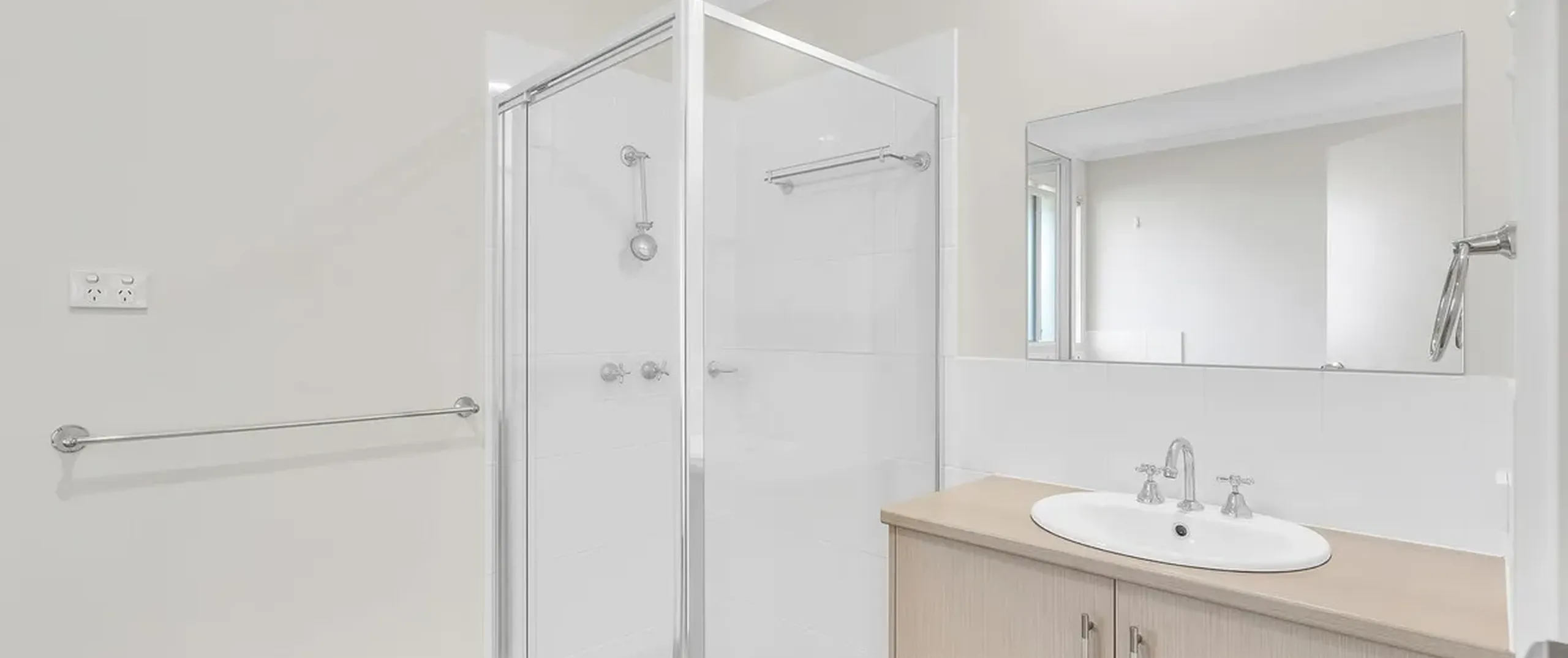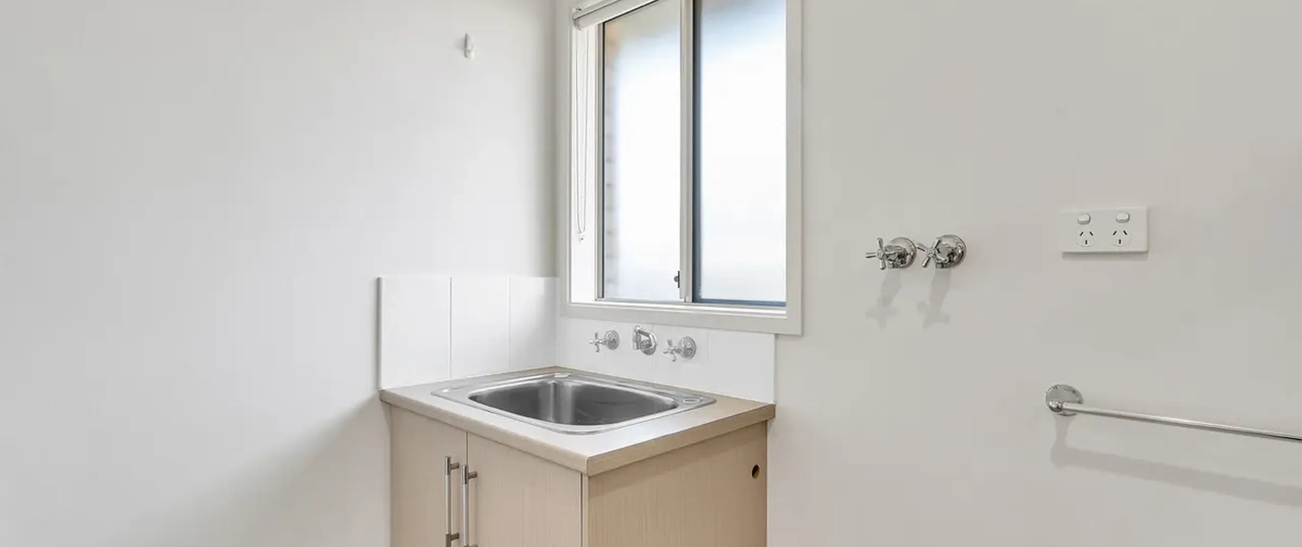 - Laundry facilities located in main bathroom with trough and below cupboard space