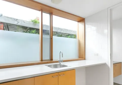 - Light-filled living area opens up to a low maintenance courtyard and stone paved area