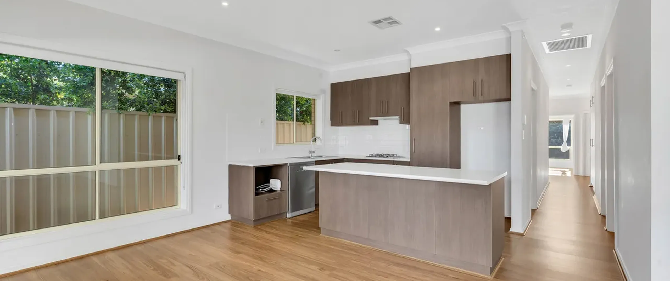 - Floating timber floors throughout living