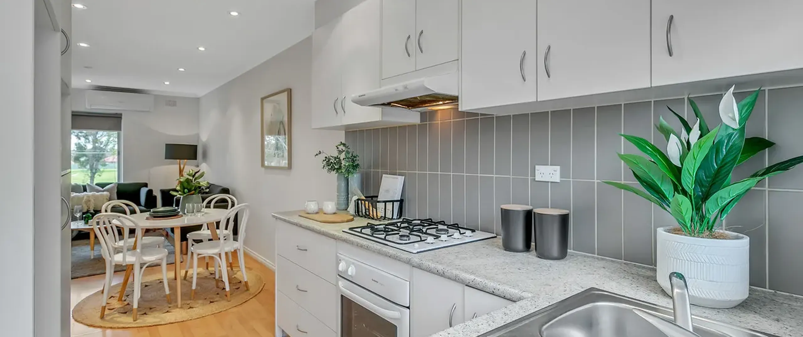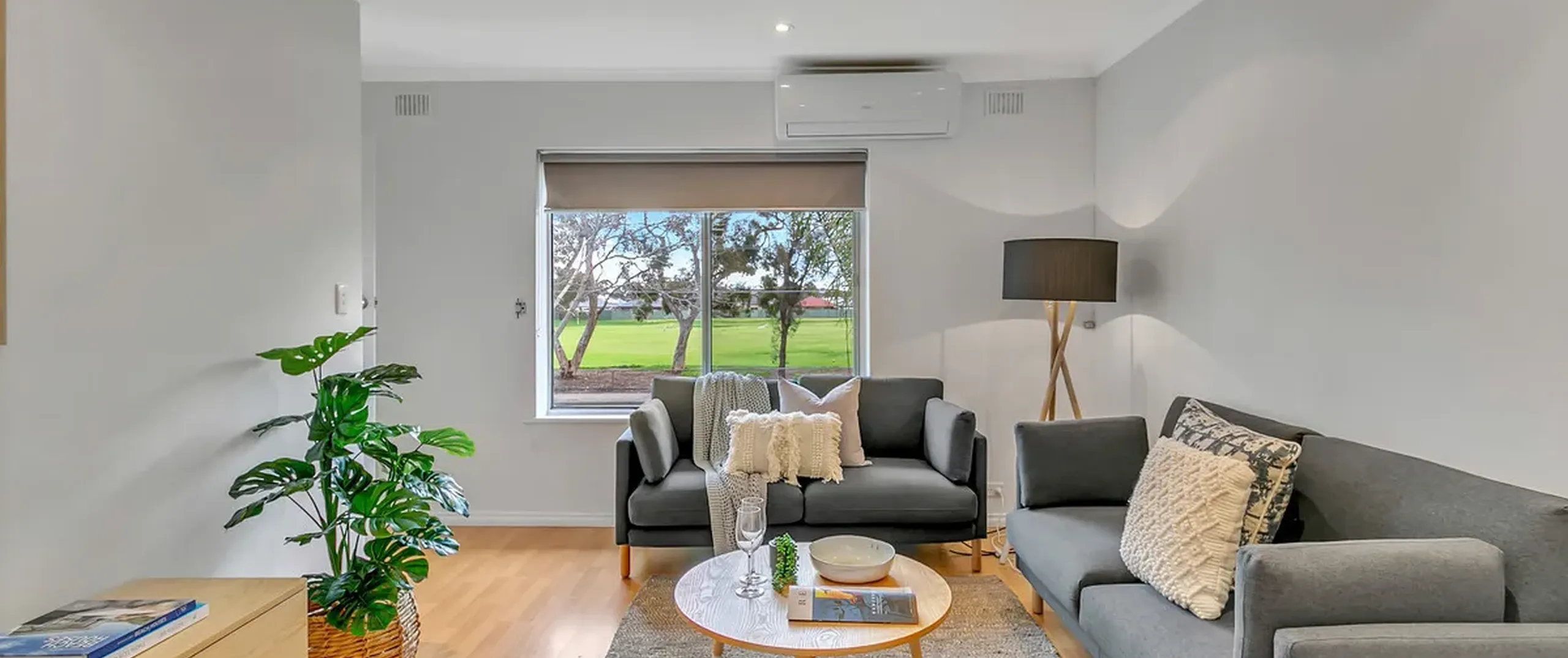 - Spacious open plan living and kitchen area with split system reverse cycle air conditioner