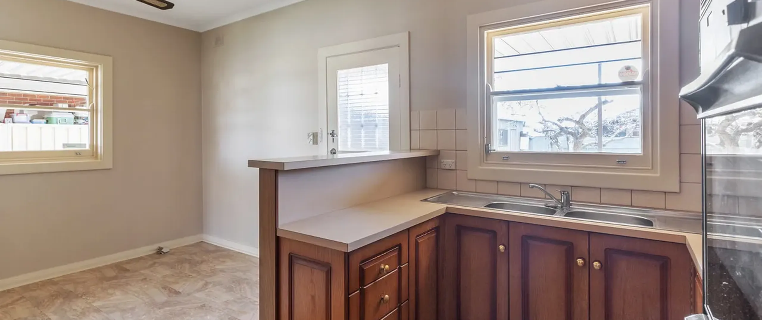 - Well-maintained kitchen with gas cooking, ample cupboard and bench space + pantry