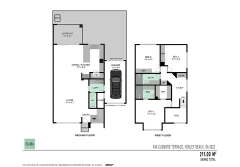 - Spacious open plan dining, living and kitchen with floating floors and glass sliding door opening to the alfresco