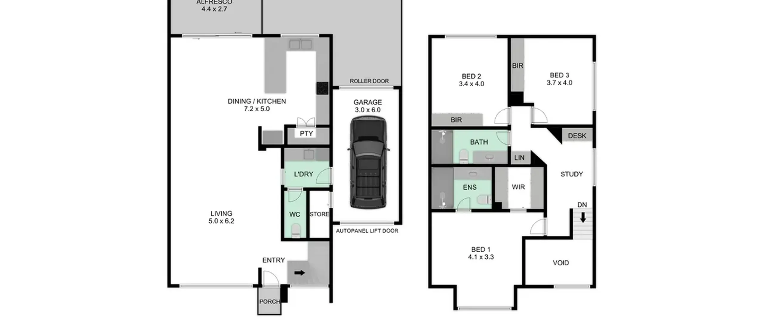 - Huge open plan living, with floating floors & high ceilings throughout with glass sliding door opening to the alfresco