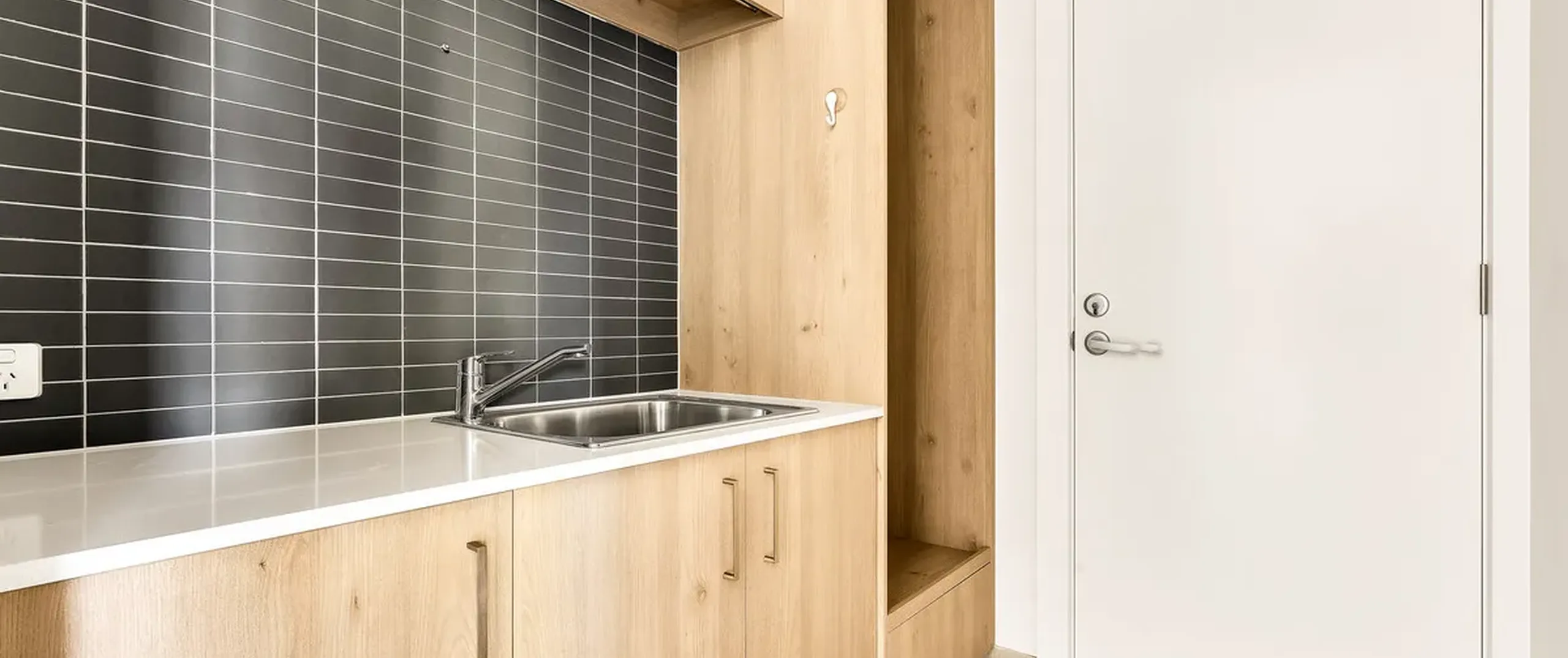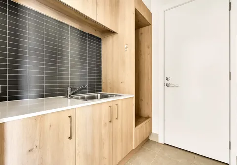 - Stylish laundry with sink and ample cupboard and bench space with external access to garage