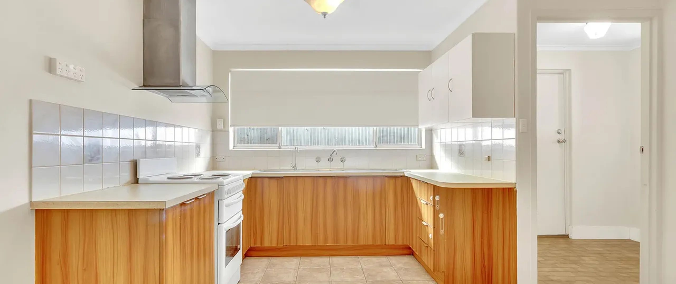 - Open kitchen with electric cooking and ample cupboard and bench space adjacent roomy dining area