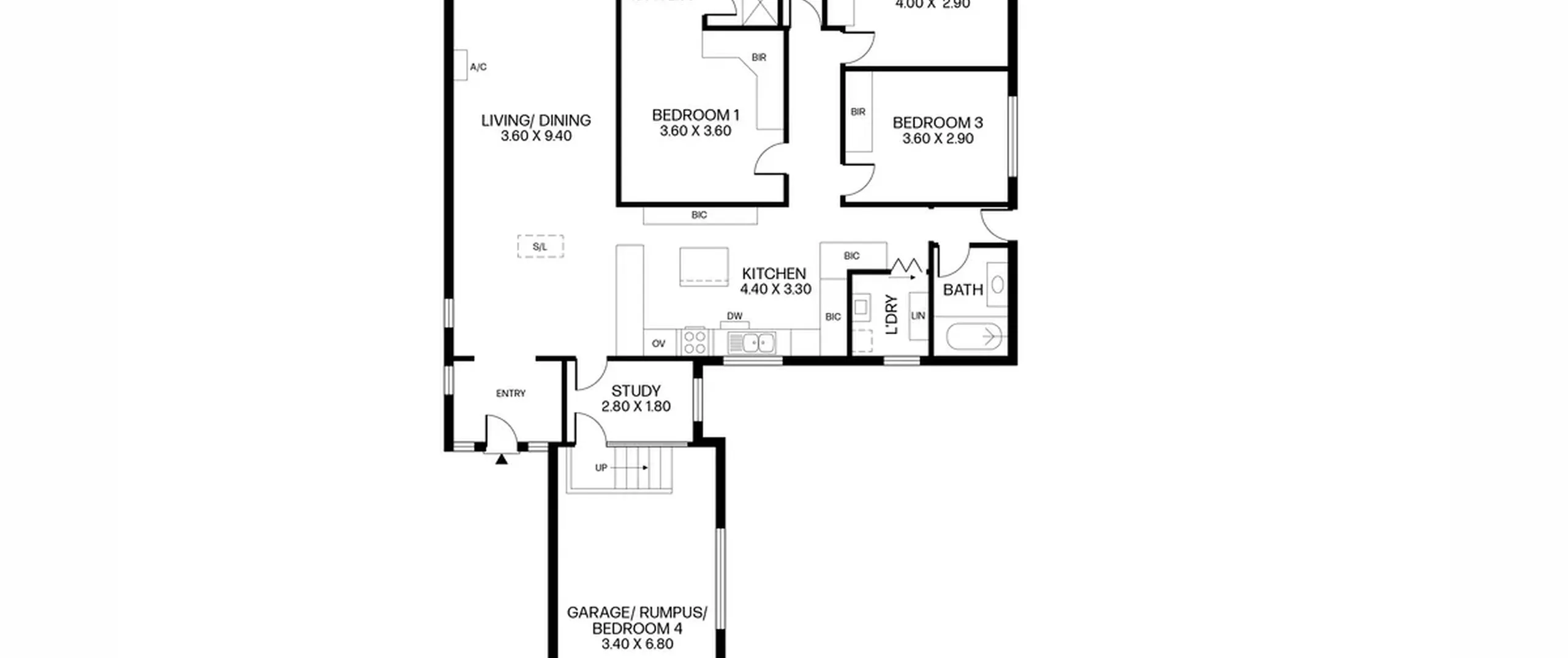 - Bedroom 4 or optional rumpus with split system air conditioning