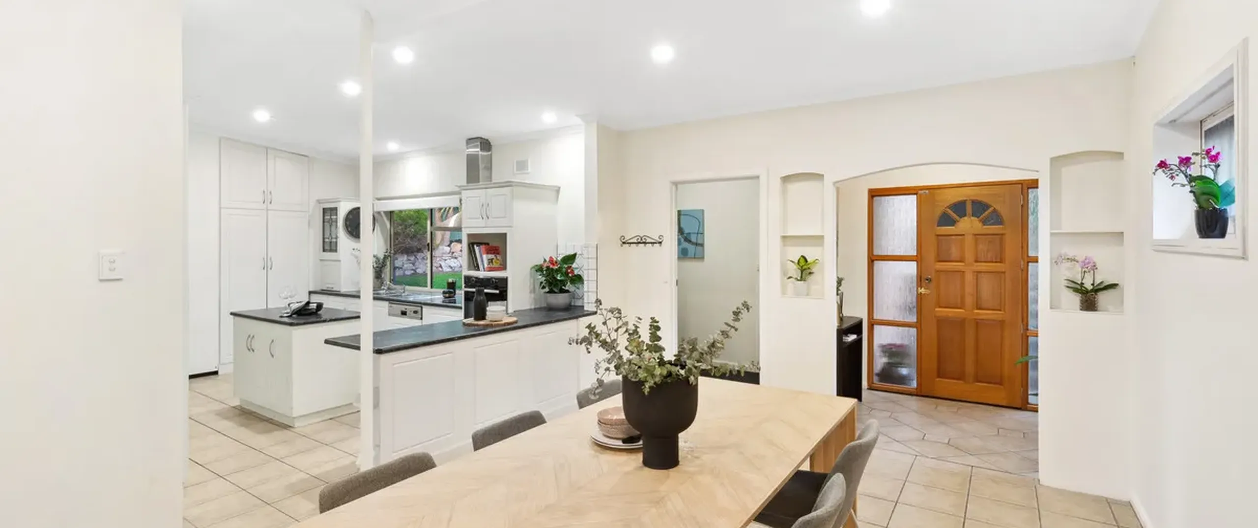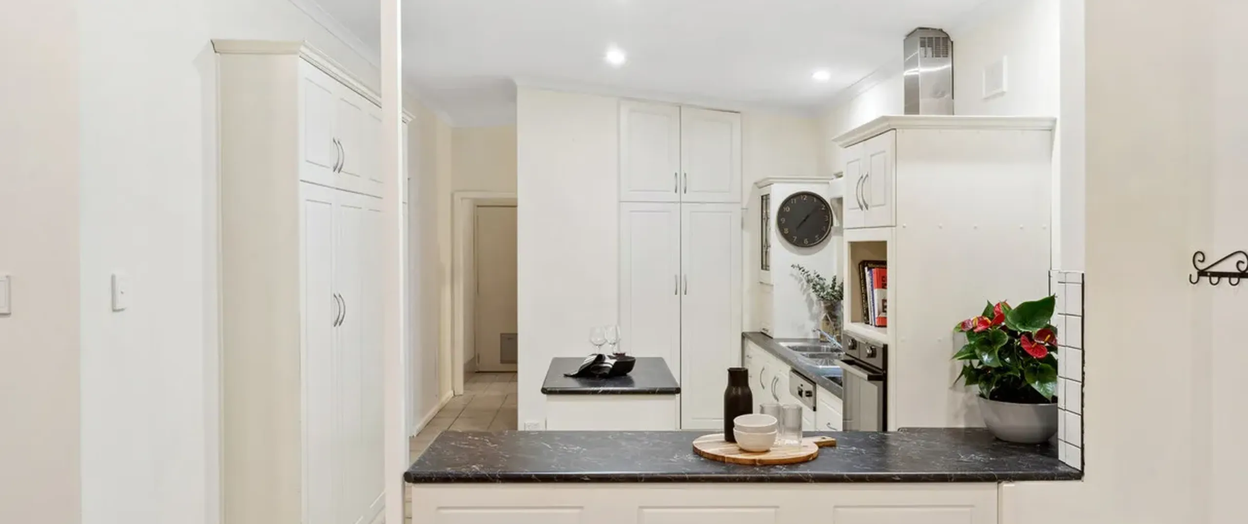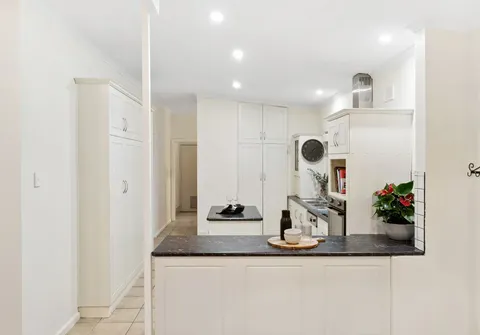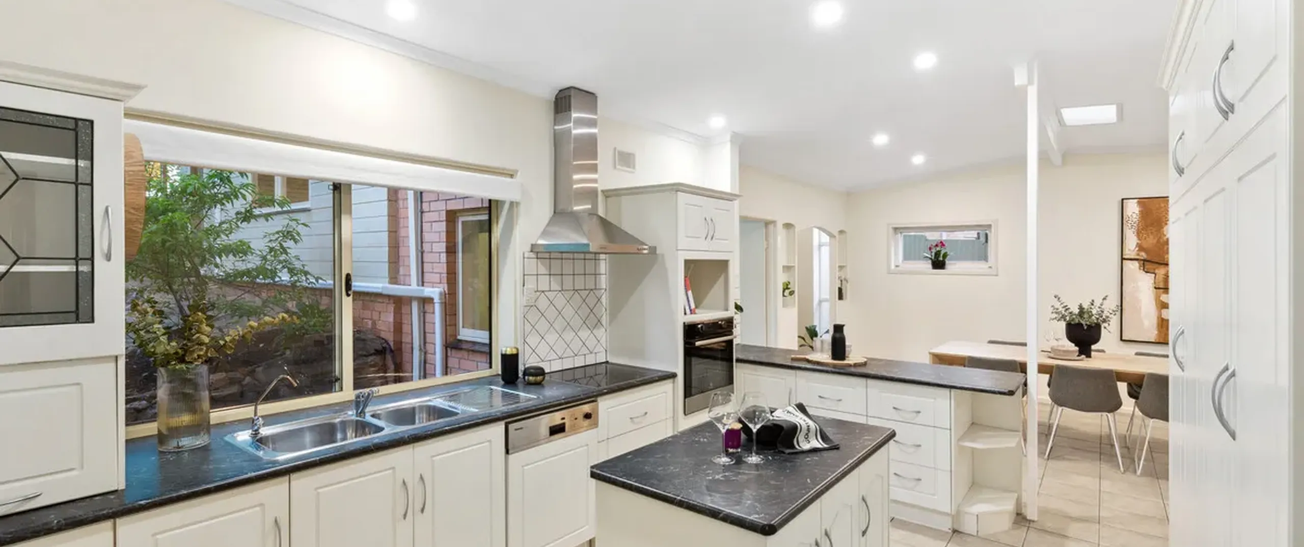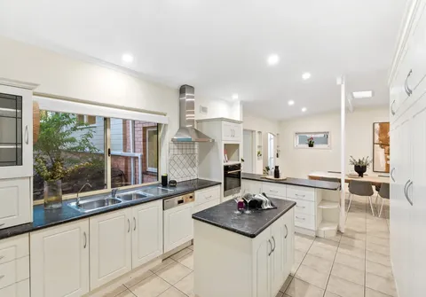 - Stylish adjoining kitchen offers ample storage and bench space and is complete with an island bench, electric cooktop, and a clear view of the front yard