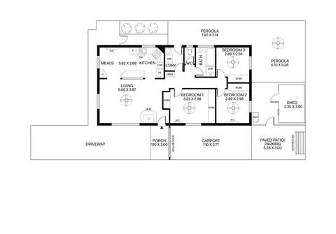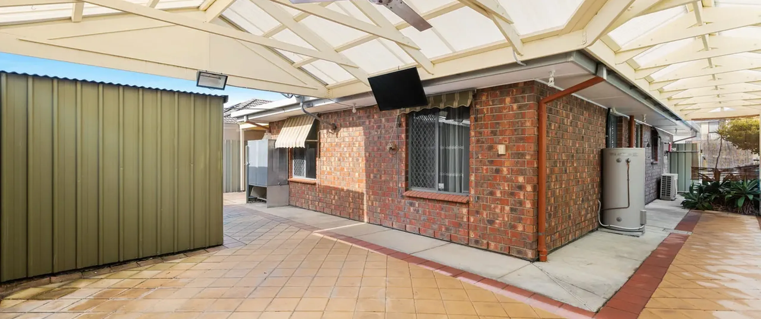- Paved courtyard with large pergola, providing the perfect space for hosting guests in the warmer months