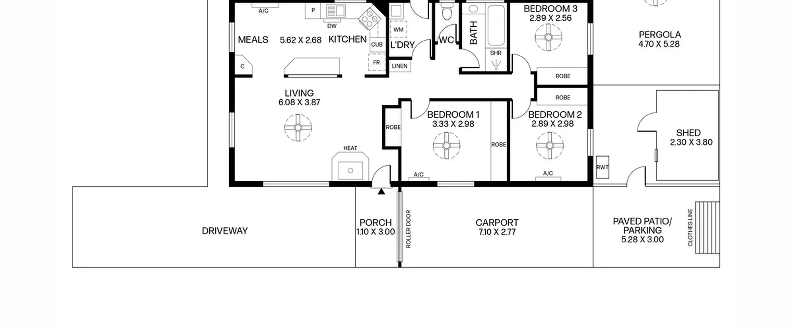 - Three good sized bedrooms with ceiling fans and built-in robes; bedrooms 1 & 2 also offering air conditioning