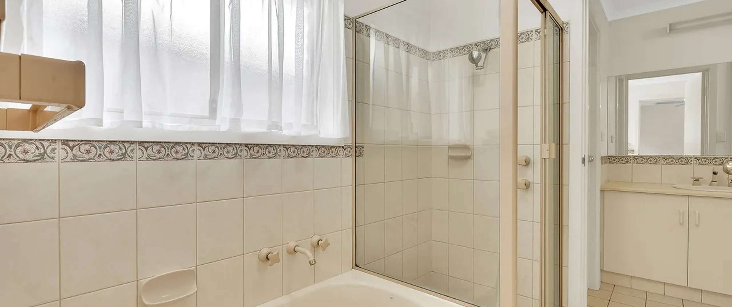 - Neat and tidy two-way main bathroom with separate shower and bath tub