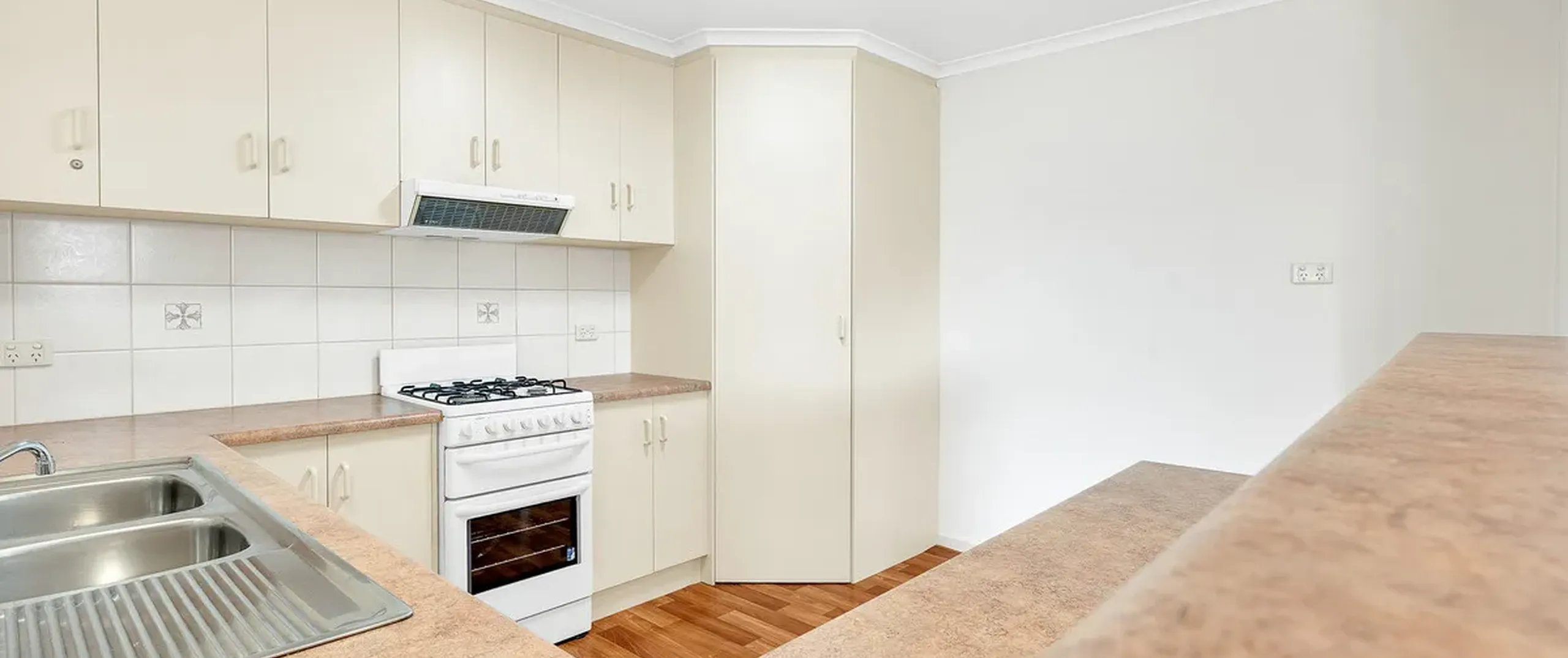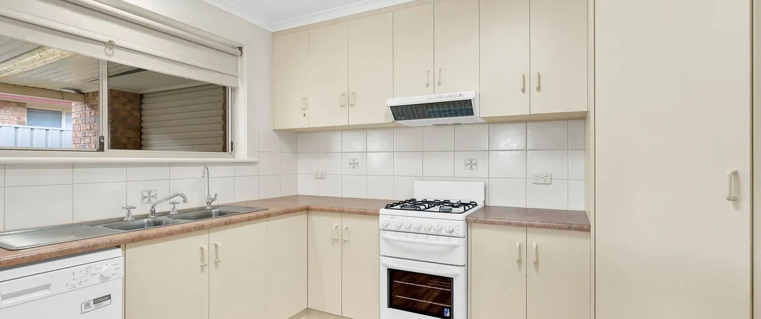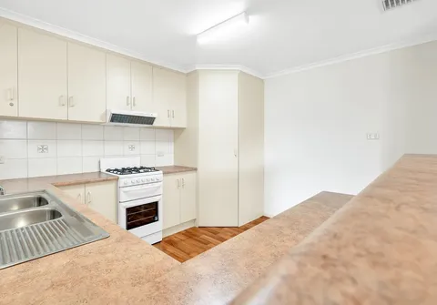 - Well-maintained kitchen with gas cooking, dual sink, ample cupboard and bench space with pantry and high breakfast bar