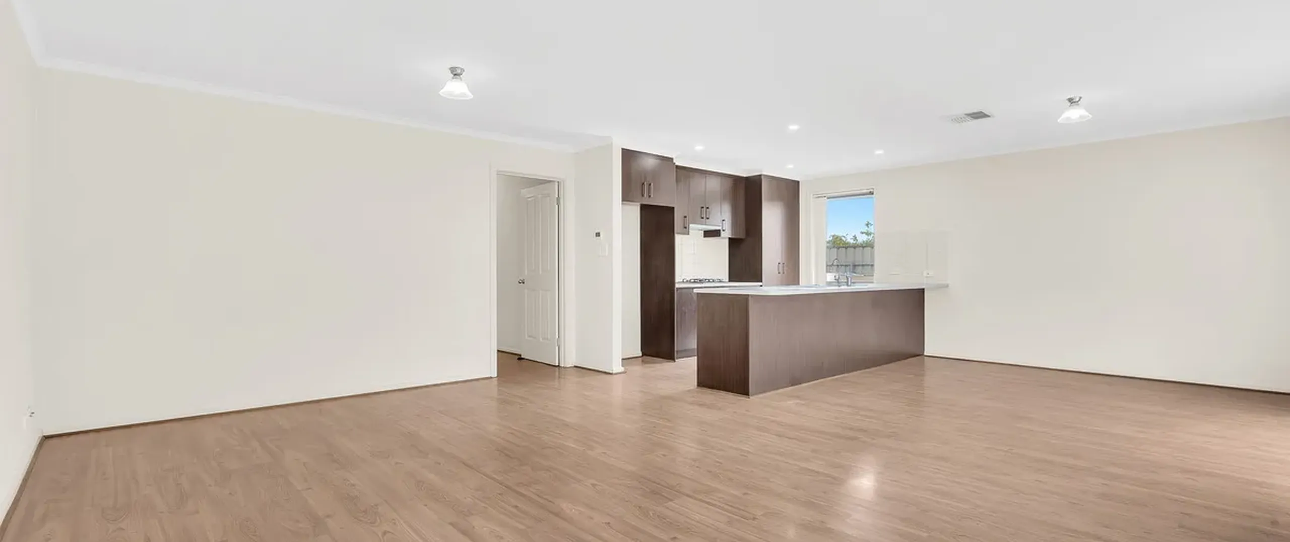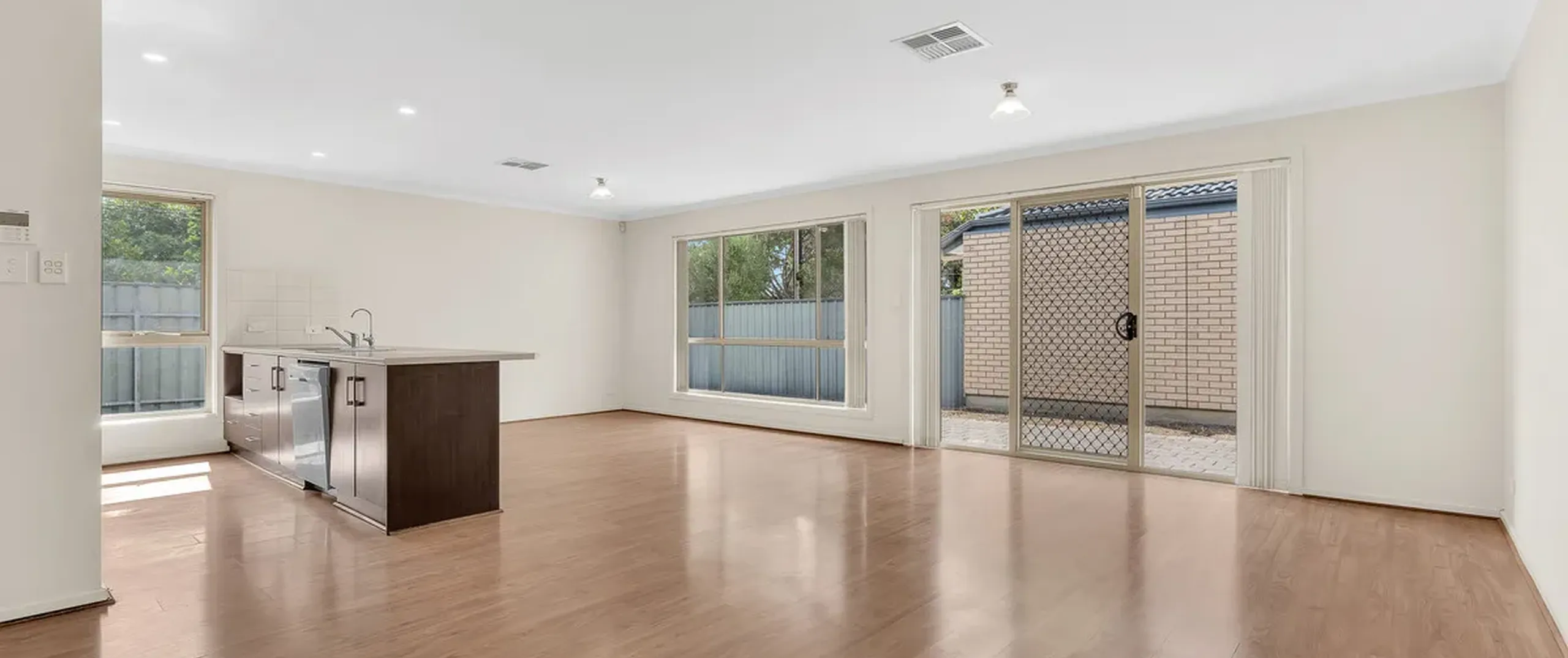- Fantastic, open-plan kitchen, living and dining area with glass sliding door opening to the backyard