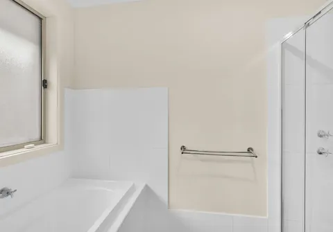 - Neat and tidy main bathroom with separate bath and shower with vanity and extra storage