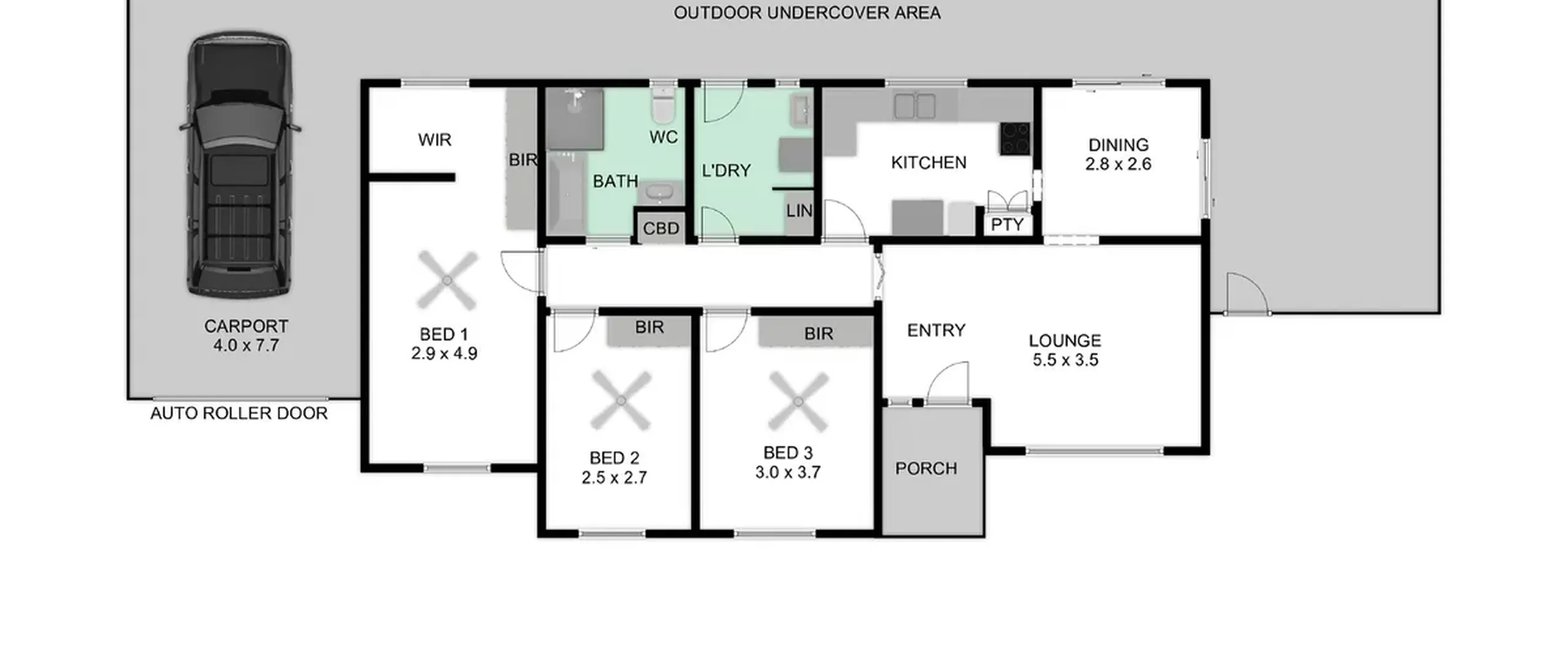- Practical laundry with cupboard space, sink and external access to the backyard