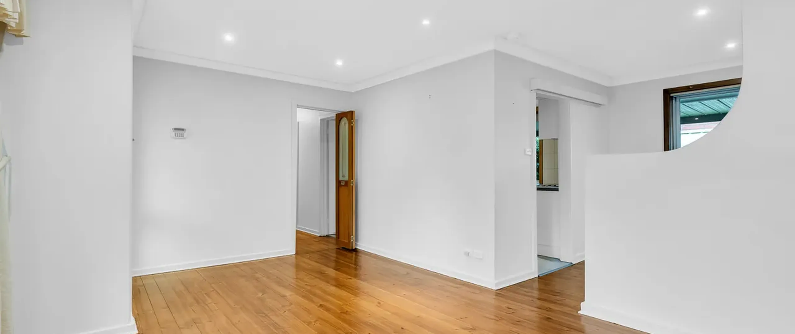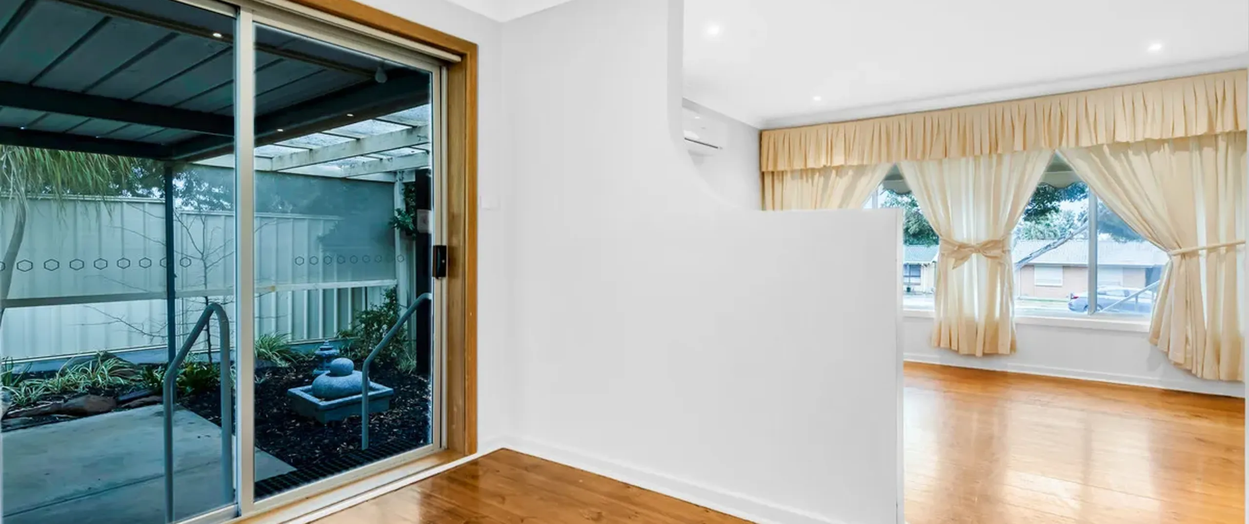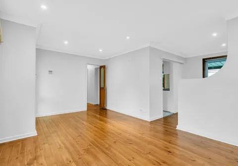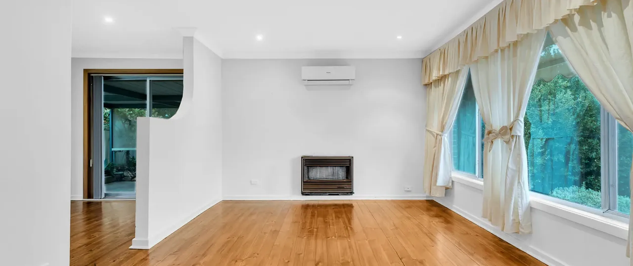- Spacious bright living room with timber floorboards throughout, split system air conditioning and seamlessly connecting to dining room