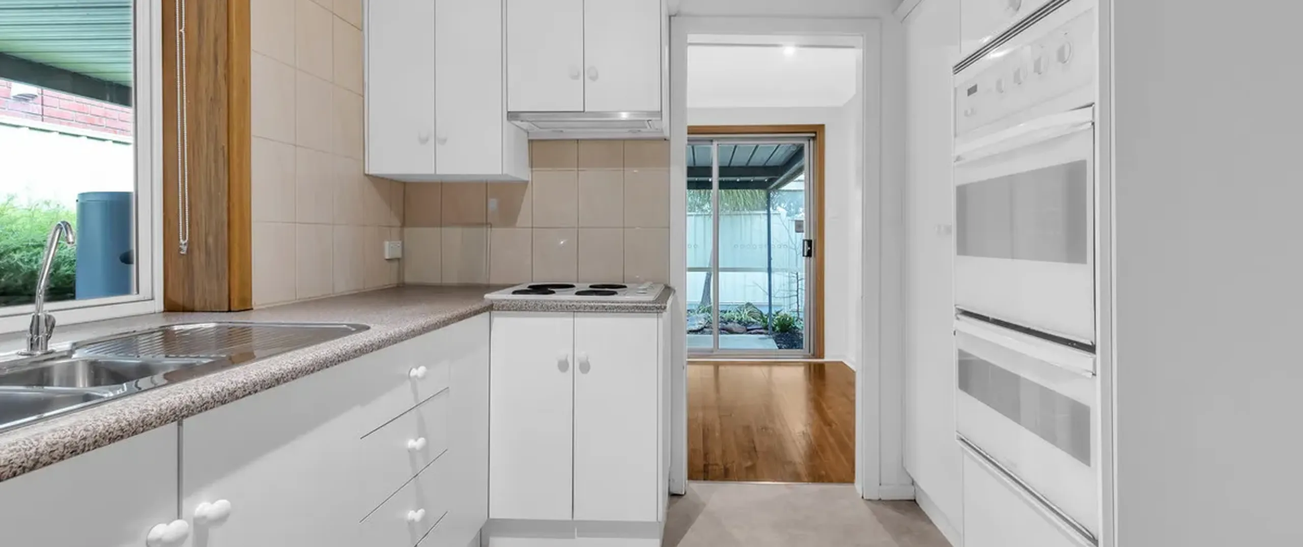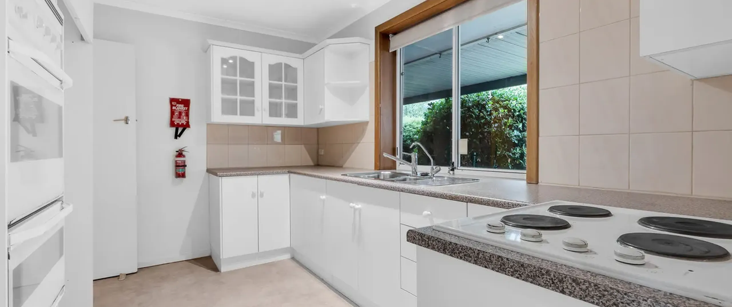 - Well-maintained kitchen with electric cooking, dual sink, wall unit oven, ample cupboard and bench space and pantry
