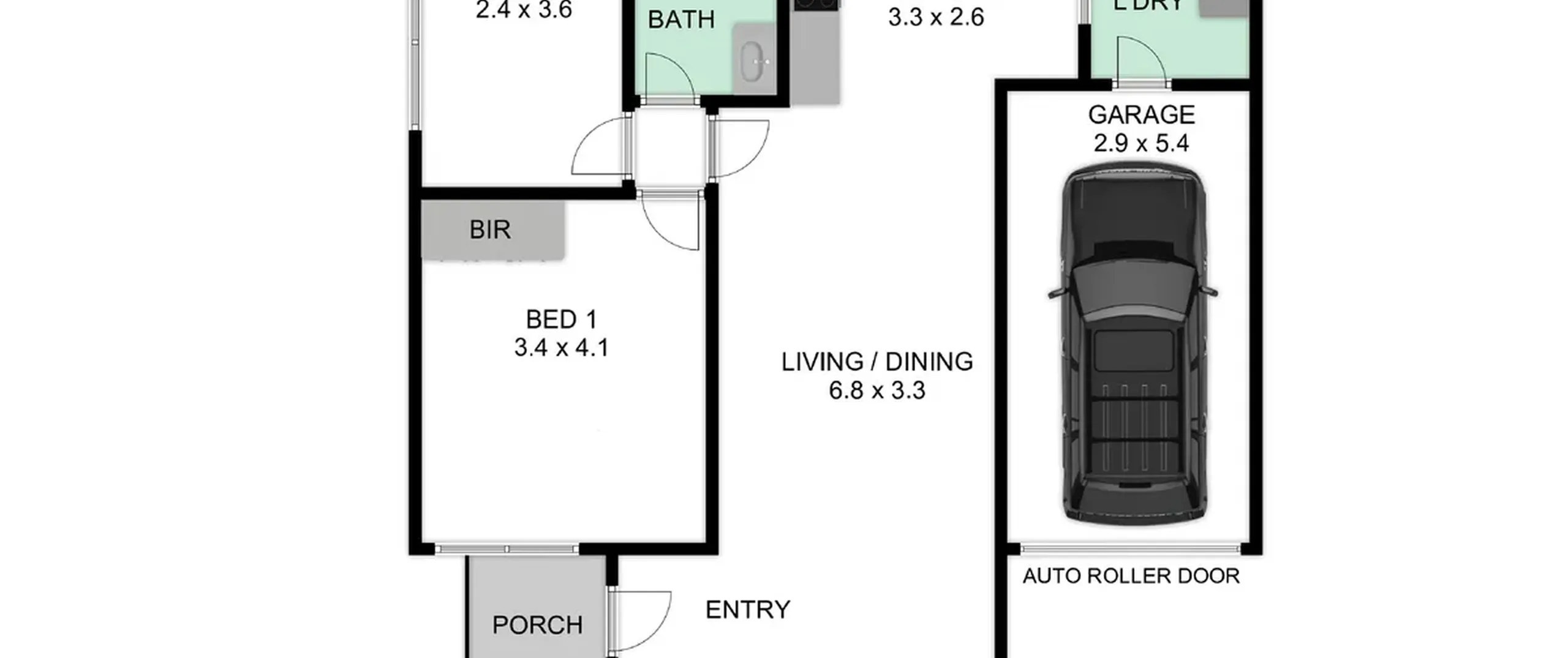 - Single car garage with automatic roller door