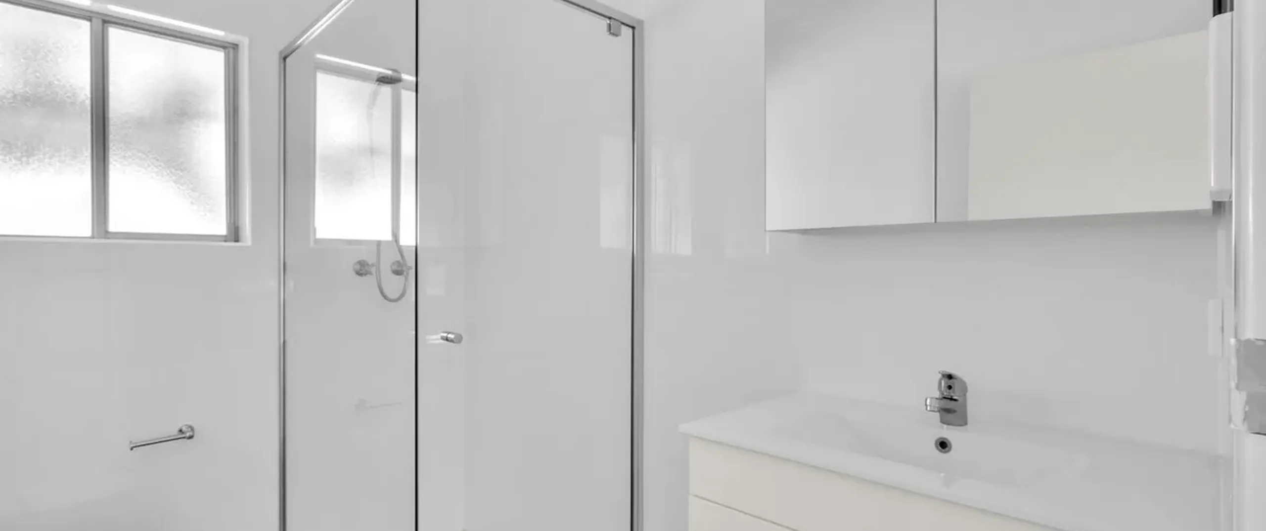 - New bathroom with shower, toilet and vanity