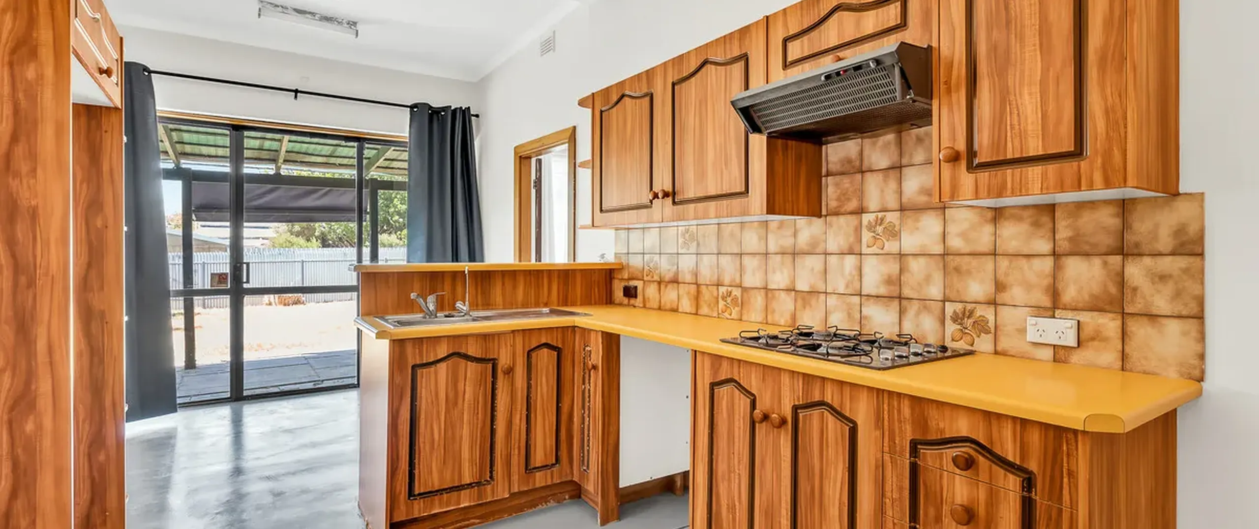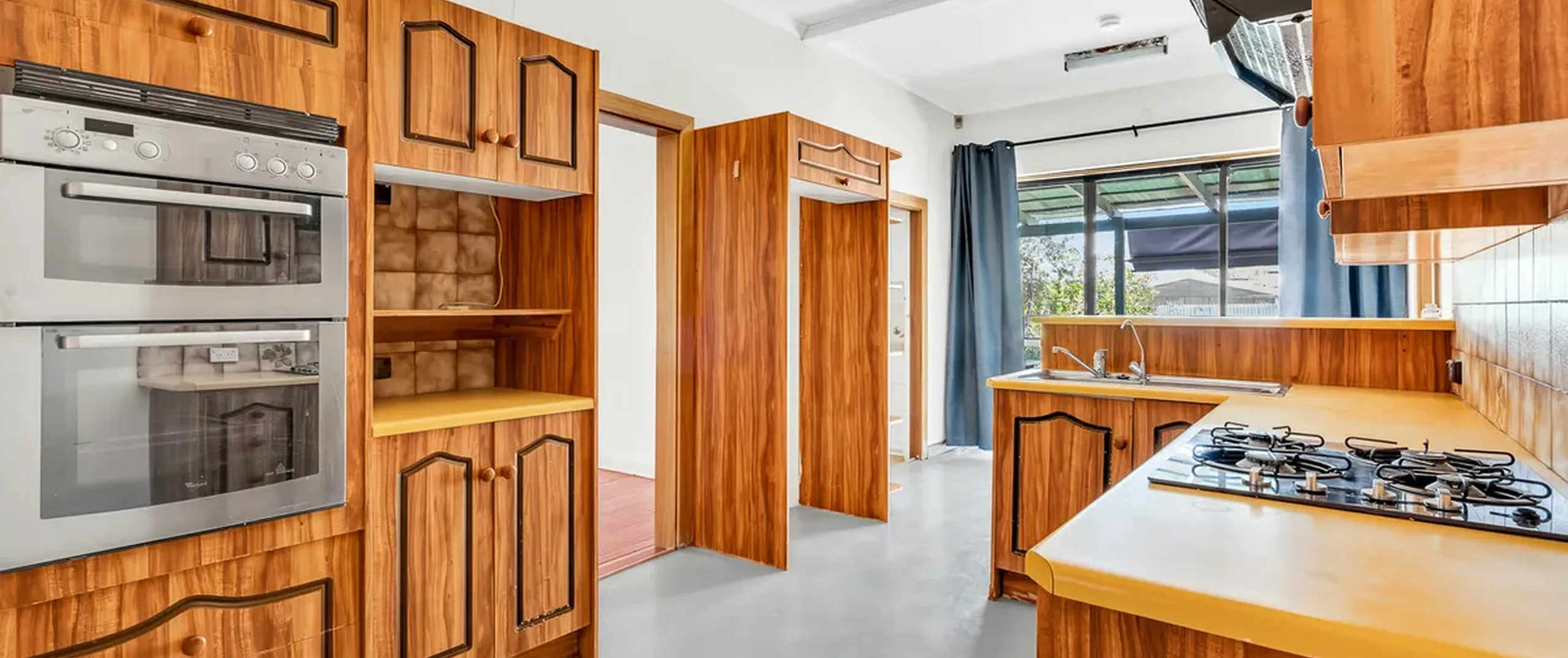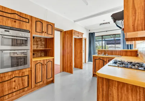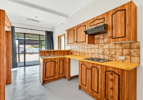 - Functional kitchen with gas cooktop and ample cupboard and bench space