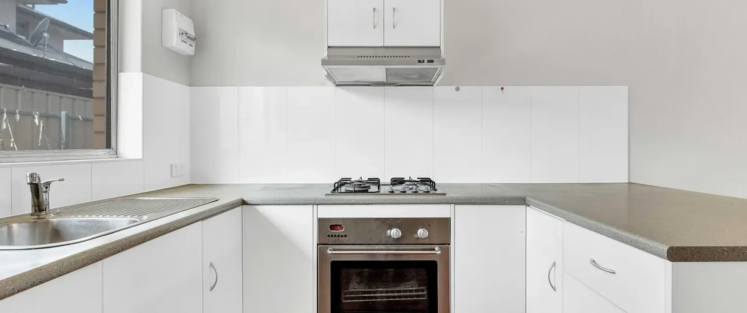 - Functional kitchen with gas cook top and oven, ample bench and cupboard space with breakfast bar