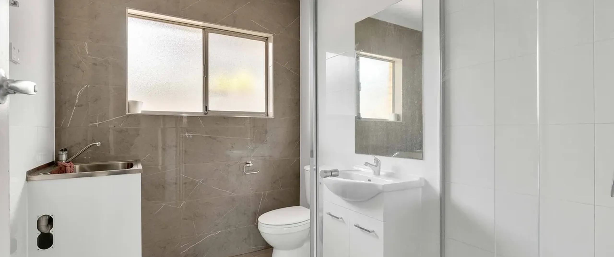 - Renovated bathroom and laundry facilities with floor to ceiling tiles, large corner shower, toilet and vanity with below storage space