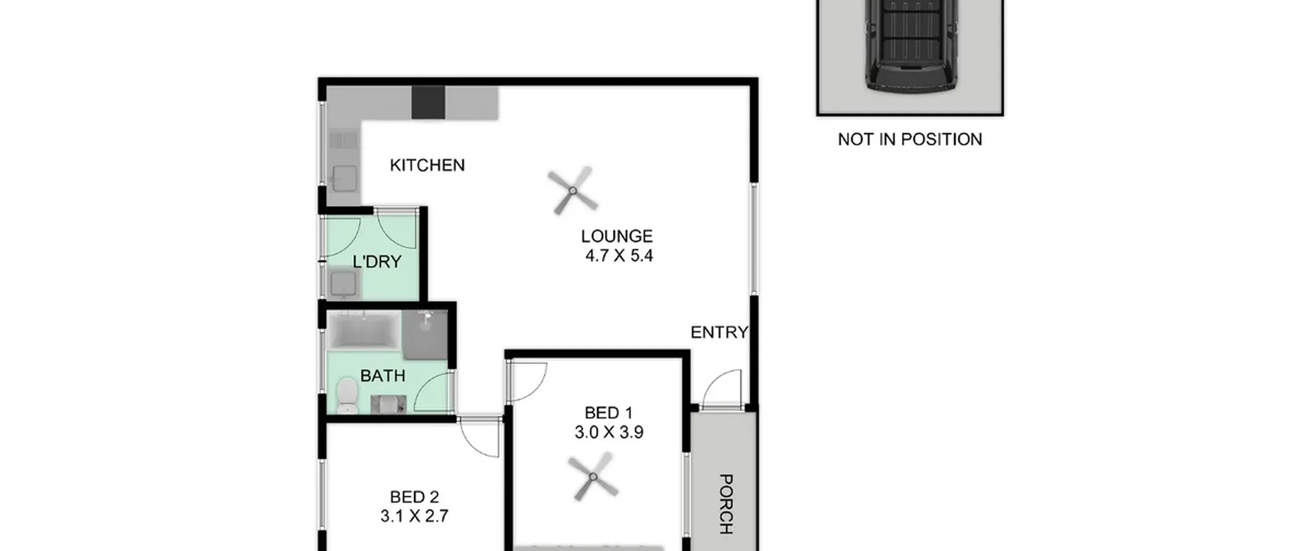 - 2 Good sized bedrooms, main bedroom complete with built in robe and ceiling fan