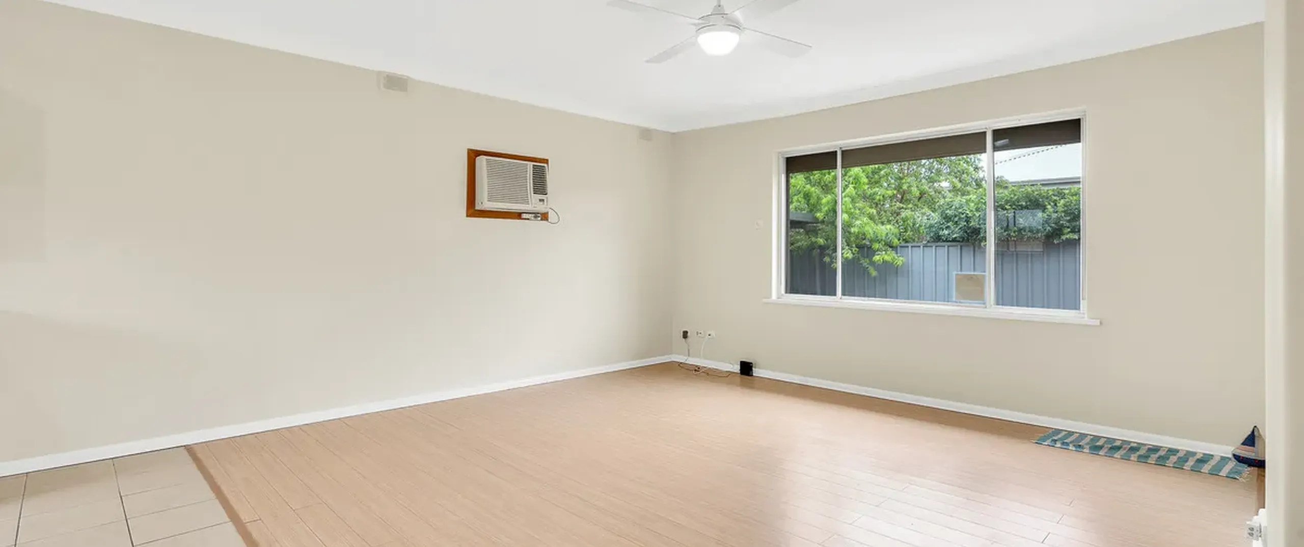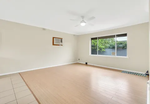- Light- filled living area with ceiling fan and wall unit heating and cooling