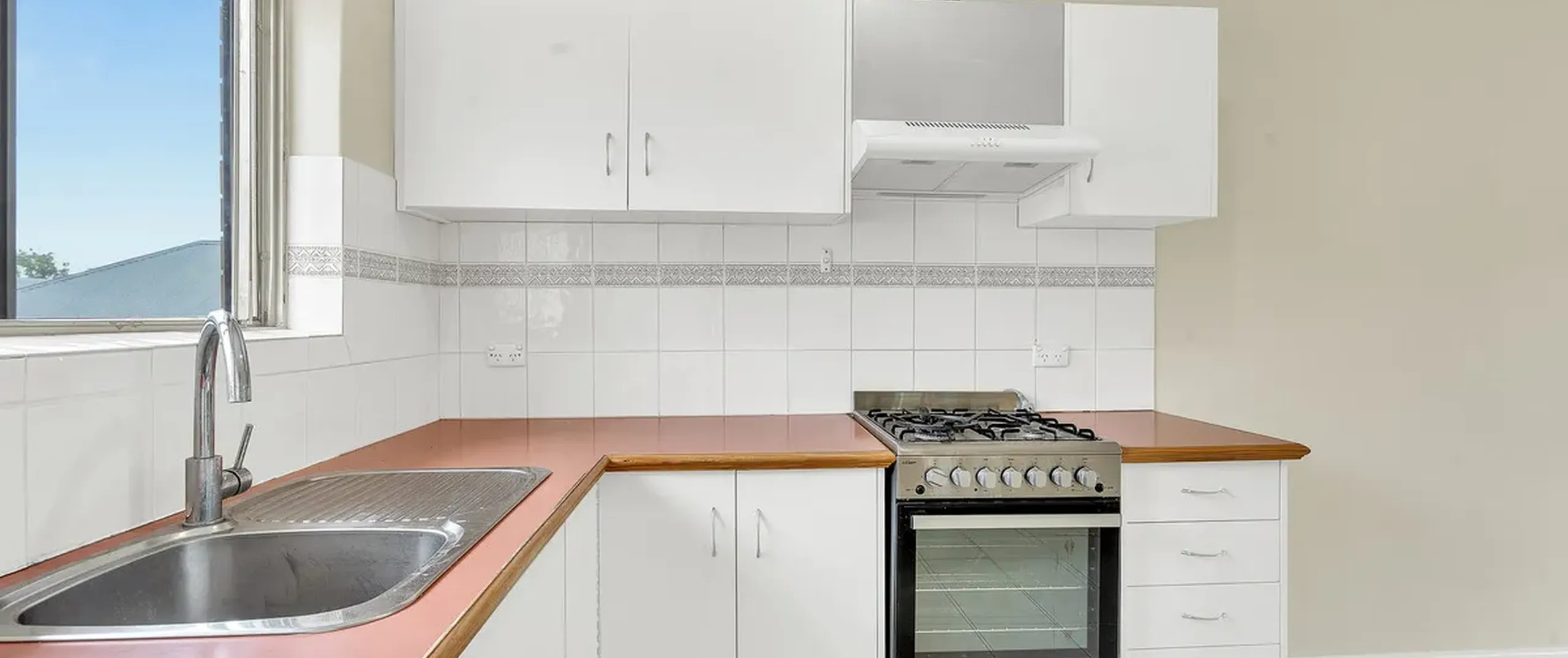 - Bright modern kitchen with gas oven and cooktop, along with ample cupboard space