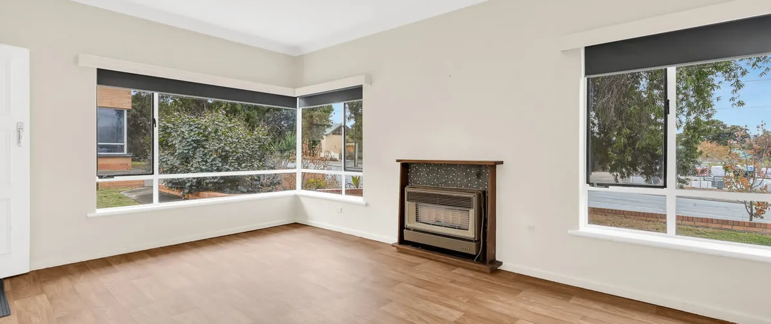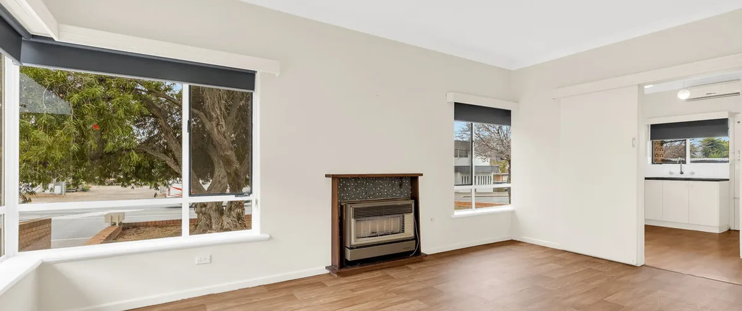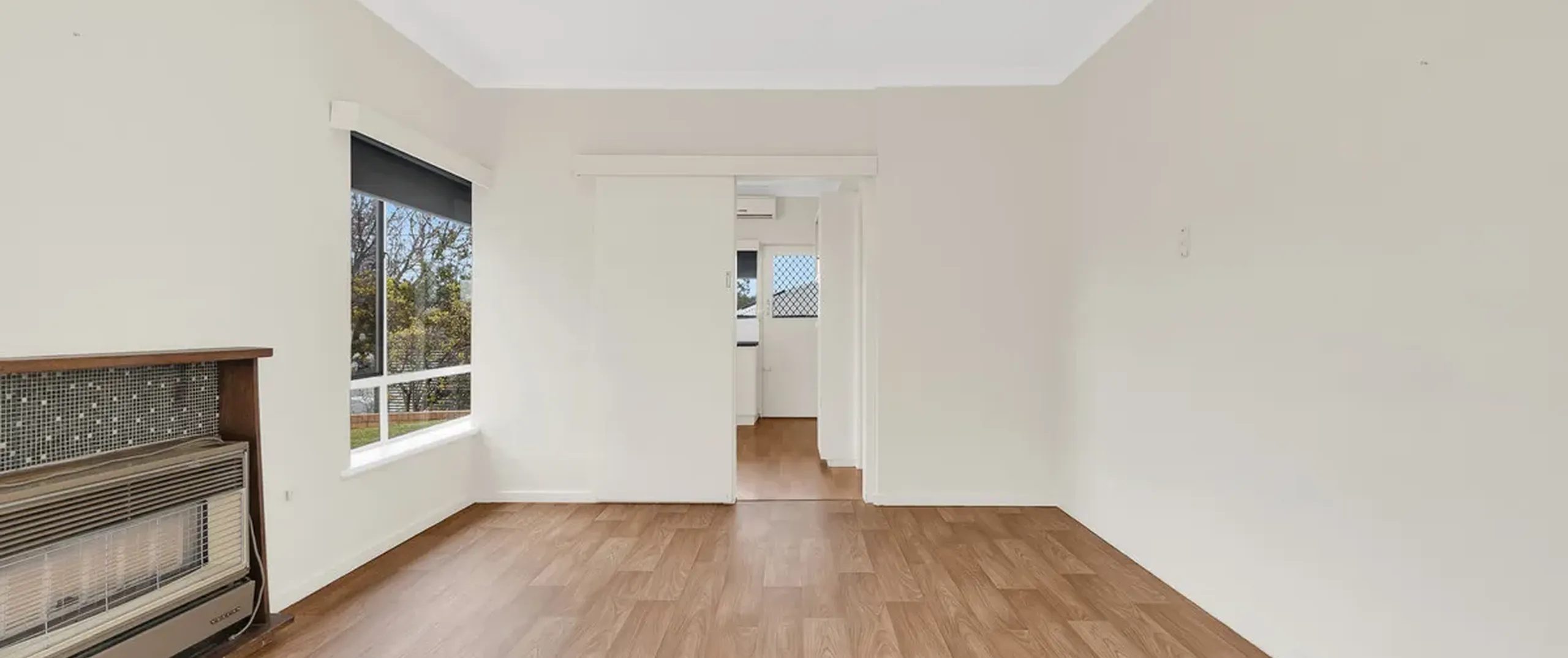 - Light filled living room with gas wall heater, floating vinyl flooring and seamlessly connects to the kitchen