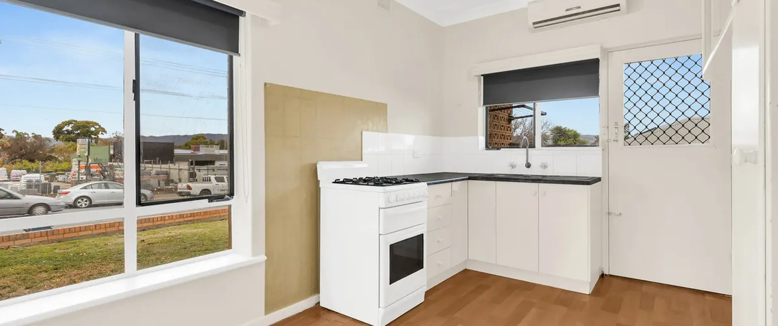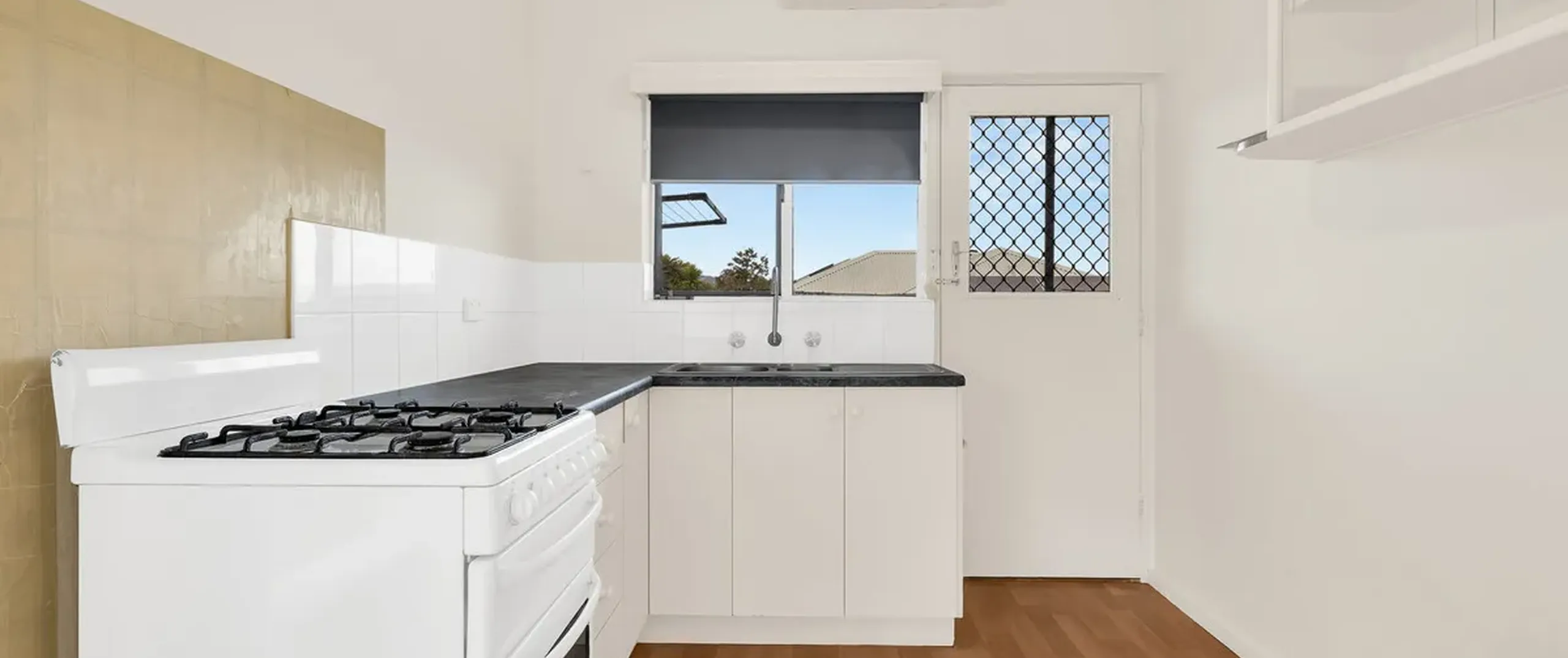 - Well-appointed kitchen complete with oven, gas cooktop, split system air conditioner, and plenty of cupboard storage