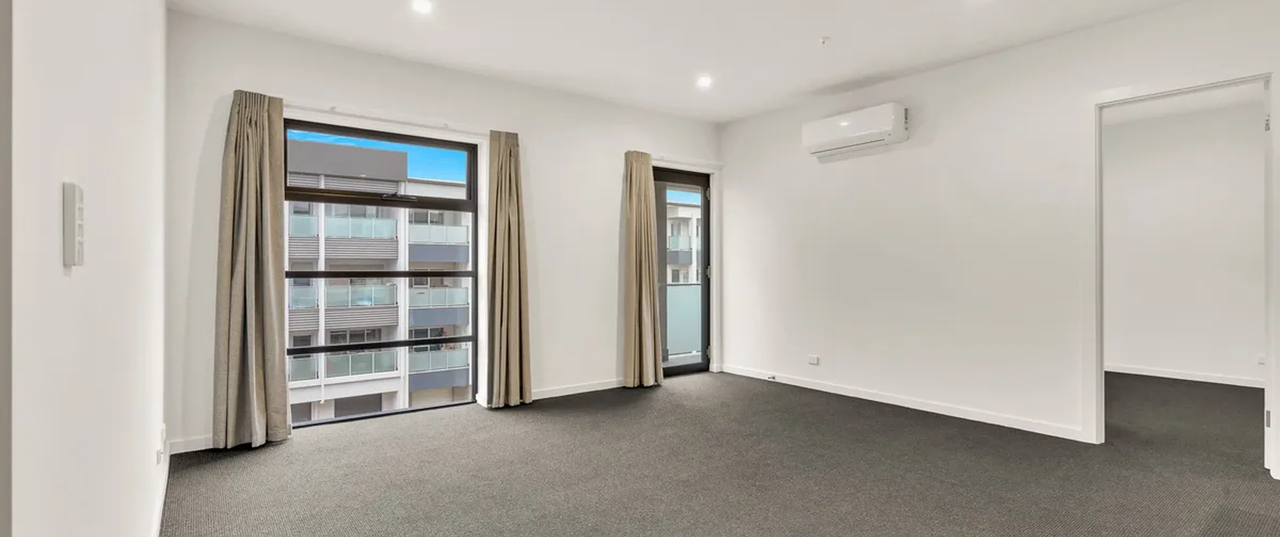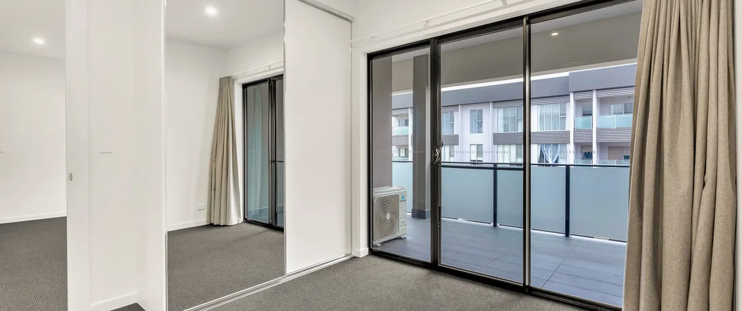 - Main bedroom with glass doors leading through to the balcony