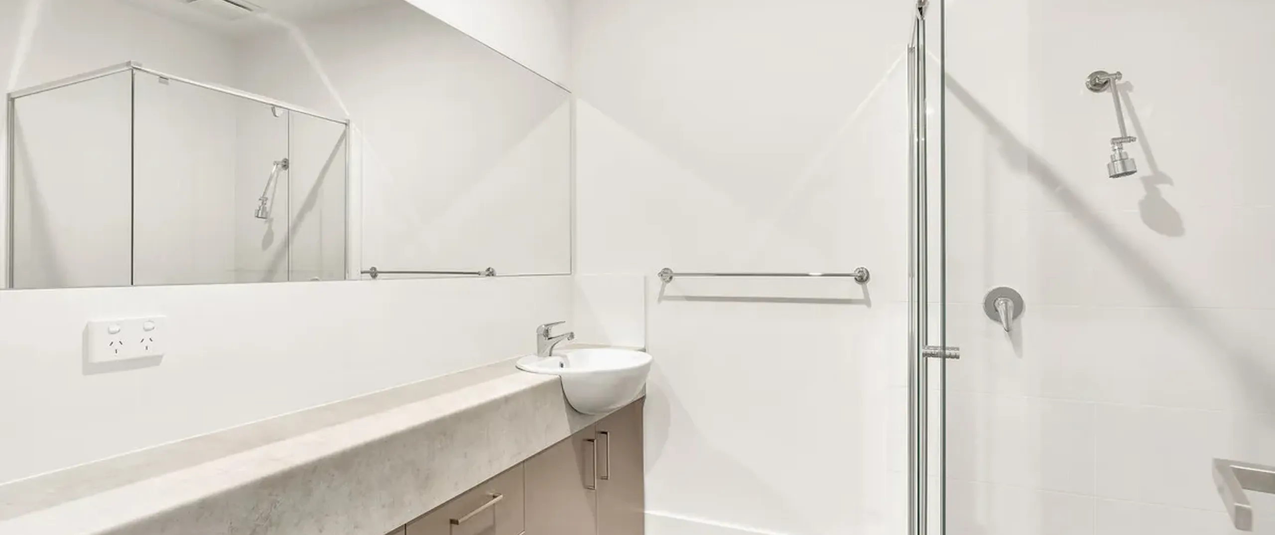 - Stunning bathroom with shower, toilet and extra-large vanity storage