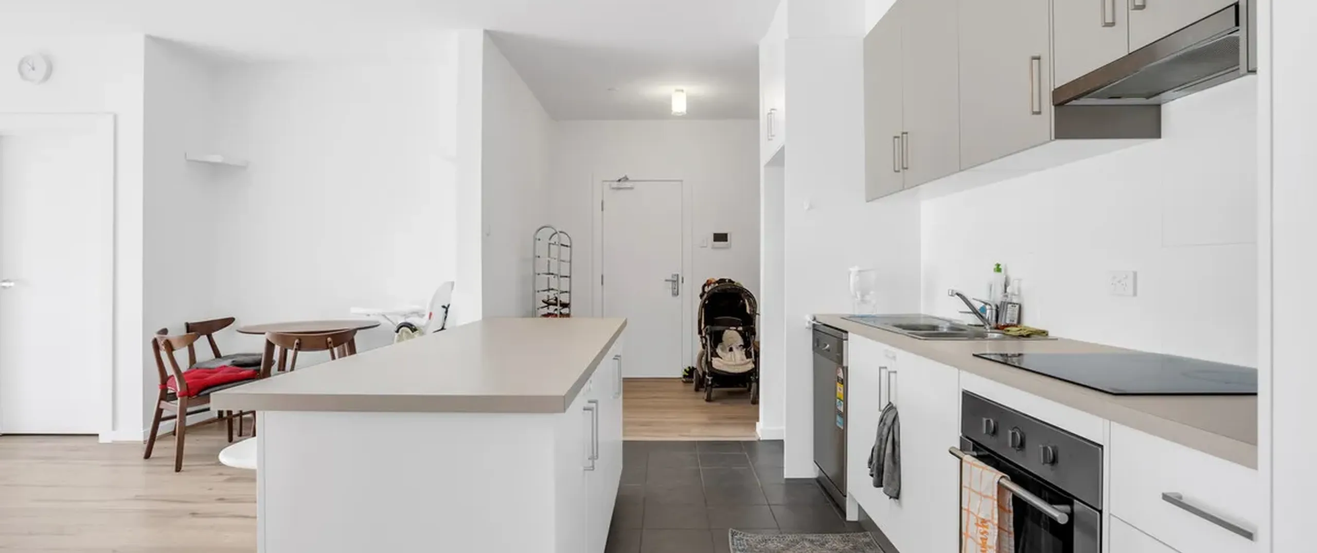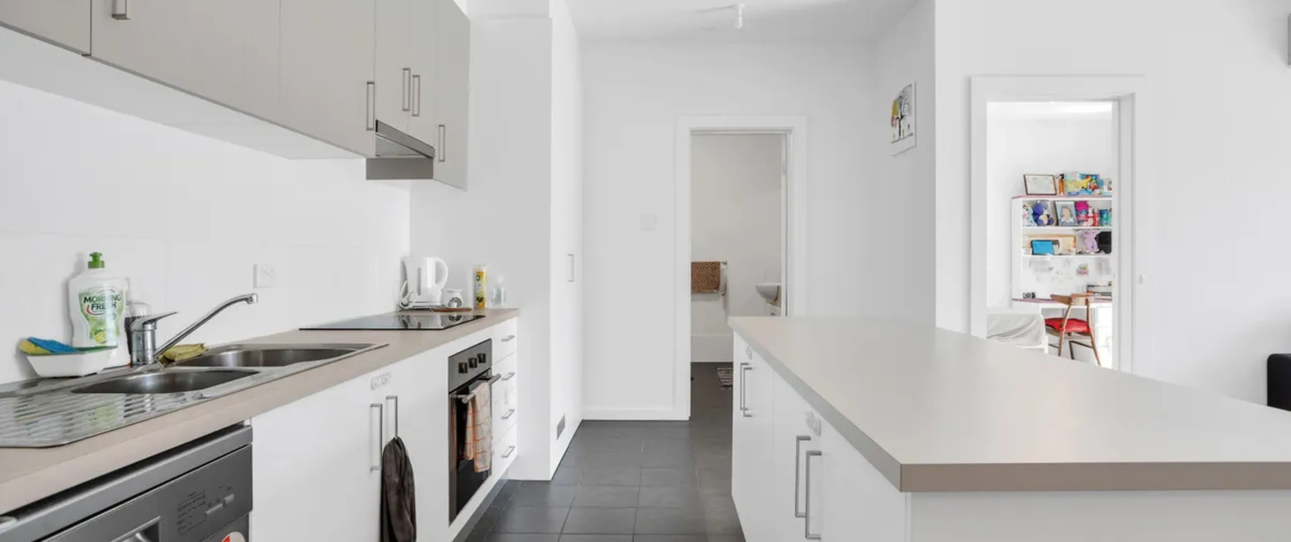 - Modern kitchen with dishwasher, stainless steel appliances and ample cupboard and bench space